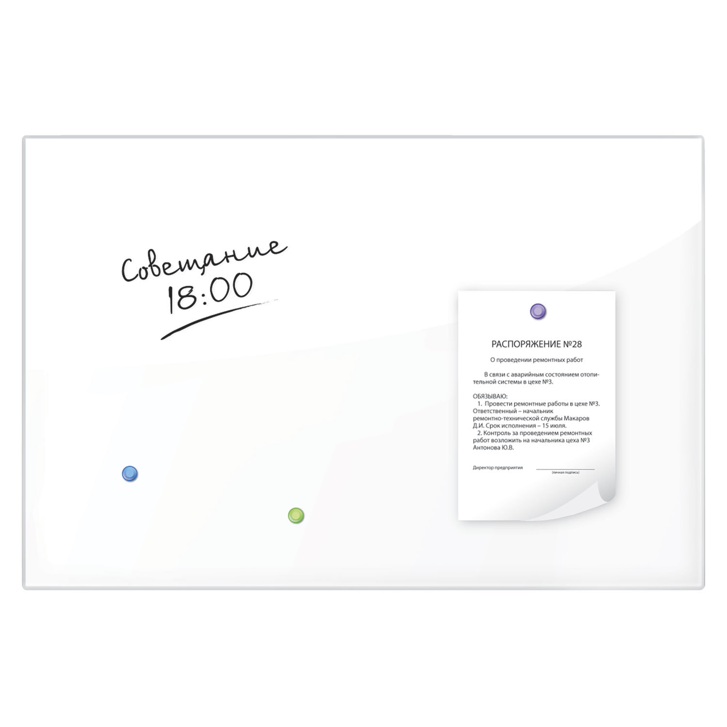 - Доска магнитно-маркерная стеклянная 60х90 см, 3 магнита, БЕЛАЯ, BRAUBERG, 236747