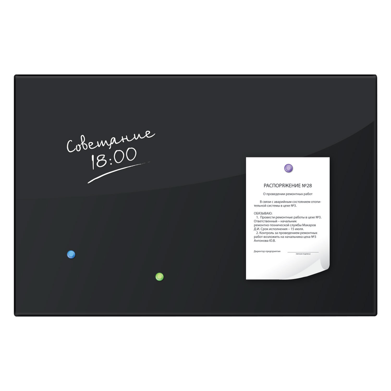 - Доска магнитно-маркерная стеклянная 60х90 см, 3 магнита, ЧЕРНАЯ, BRAUBERG, 236748