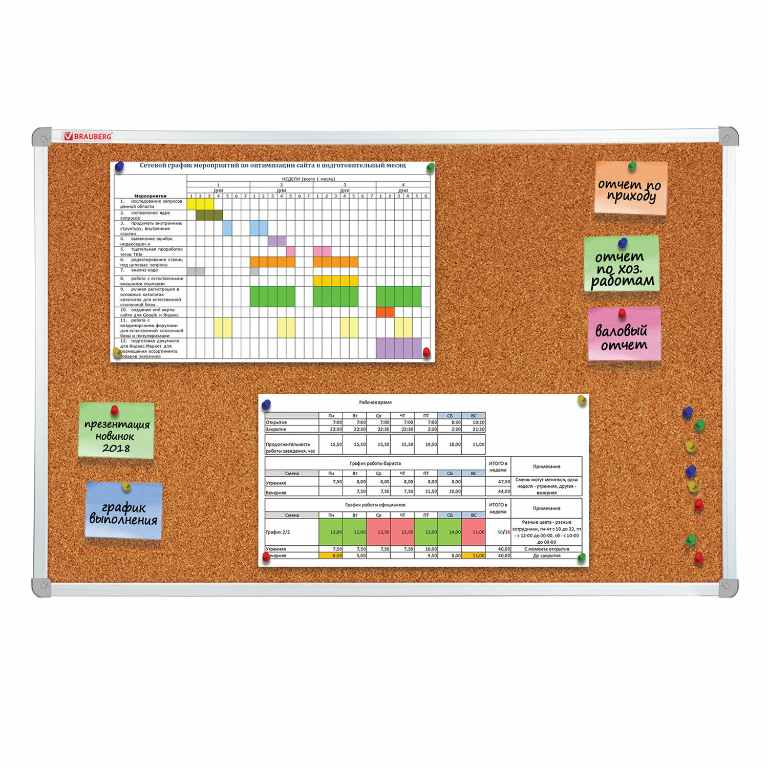- Доска пробковая 70х50 см, алюминиевая рамка, ГАРАНТИЯ 10 ЛЕТ, РОССИЯ, BRAUBERG, 238187