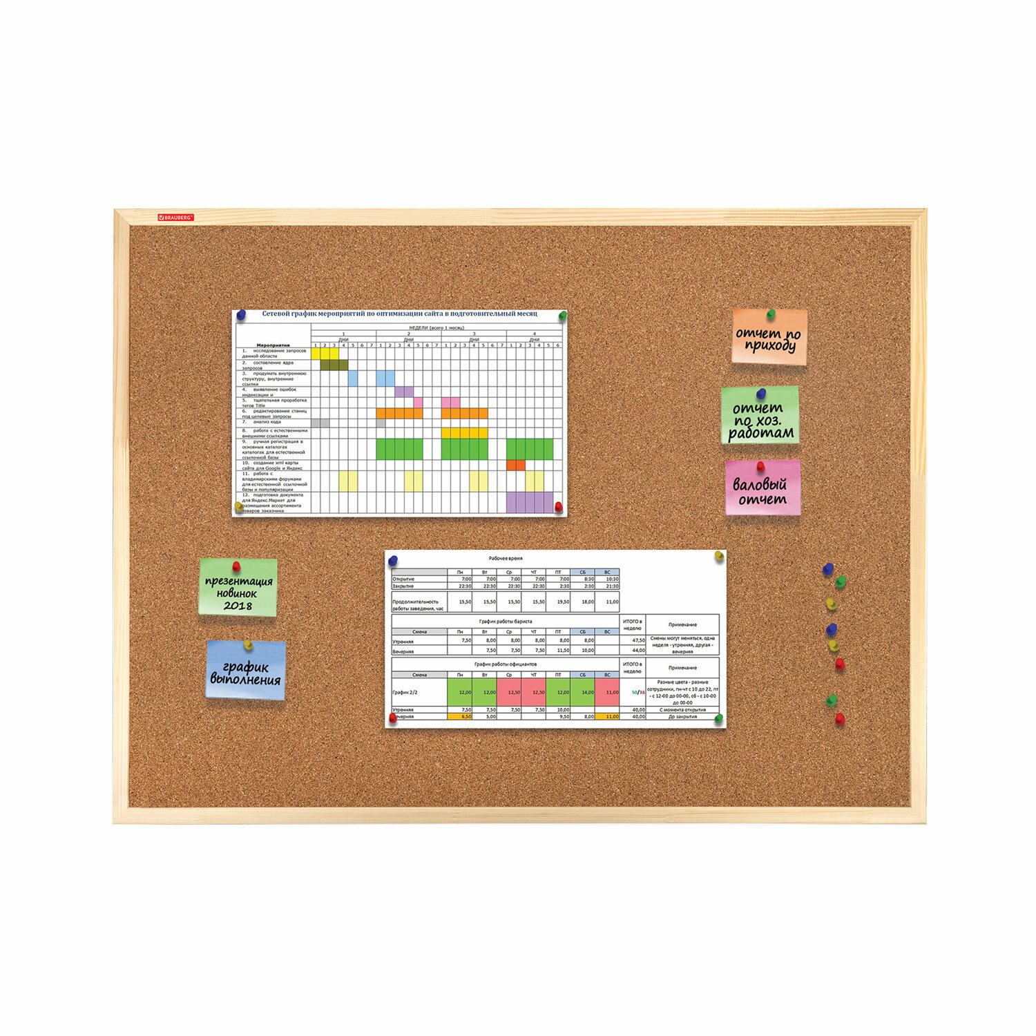 - Доска пробковая для объявлений 90х120 см, деревянная рамка, BRAUBERG Wood, 238312