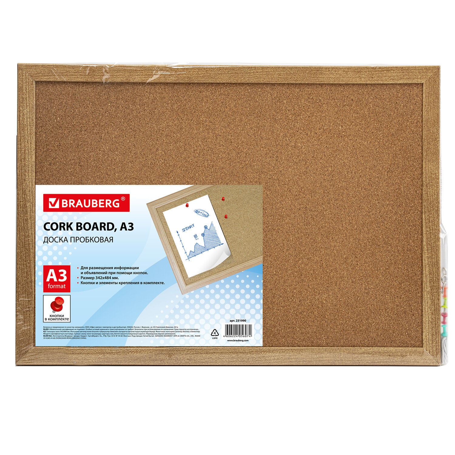 - Доска пробковая для объявлений А3, 342х484 мм, ГАРАНТИЯ 10 ЛЕТ, BRAUBERG, 231990
