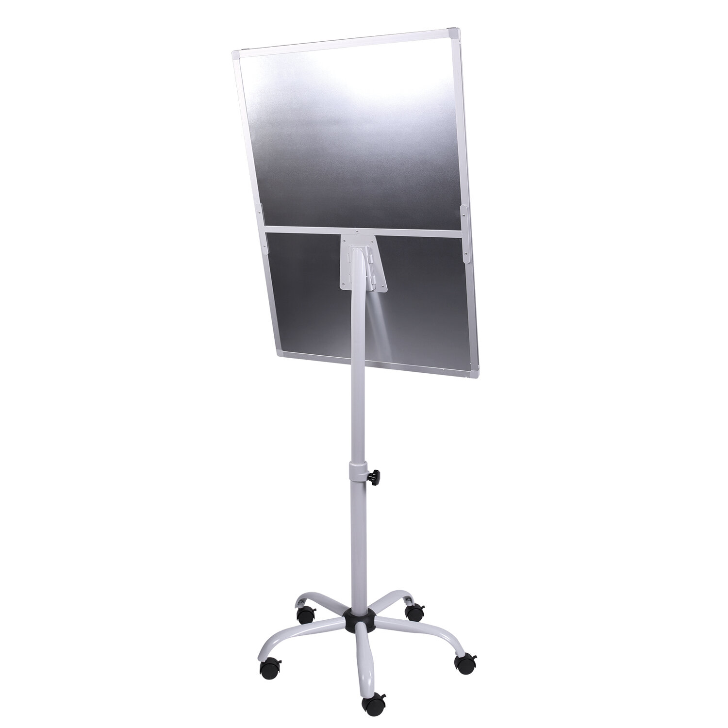 Белое лаковое покрытие предназначено для письма специальными маркерами для белой доски. Металлическая поверхность позволяет размещать объявления при помощи магнитов. Размер доски – 70х100 см. Регулируется по высоте от 170 см до 210 см. Устанавливается на пятилучии. В комплект входит лоток для аксессуаров. Блокнот крепится при помощи двух пластиковых подвижных крючков. Перед началом работы необходимо удалить защитную пленку с рабочей поверхности доски-флипчарта. Доска-флипчарт магнитно-маркерная 70x100 см, передвижная, на пятилучии, STAFF, 238003