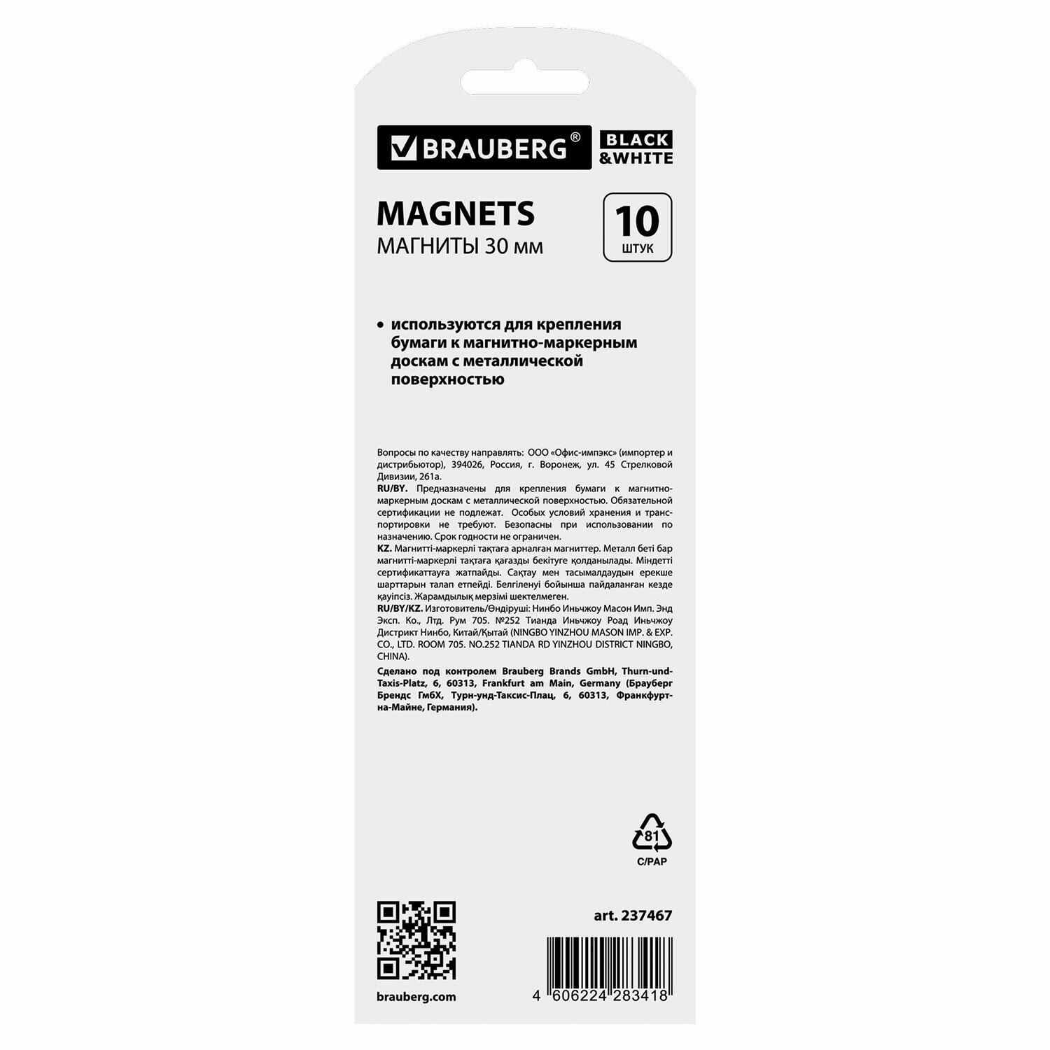 - Магниты BRAUBERG "BLACK&WHITE" УСИЛЕННЫЕ 30 мм, НАБОР 10 шт., белые, 237467