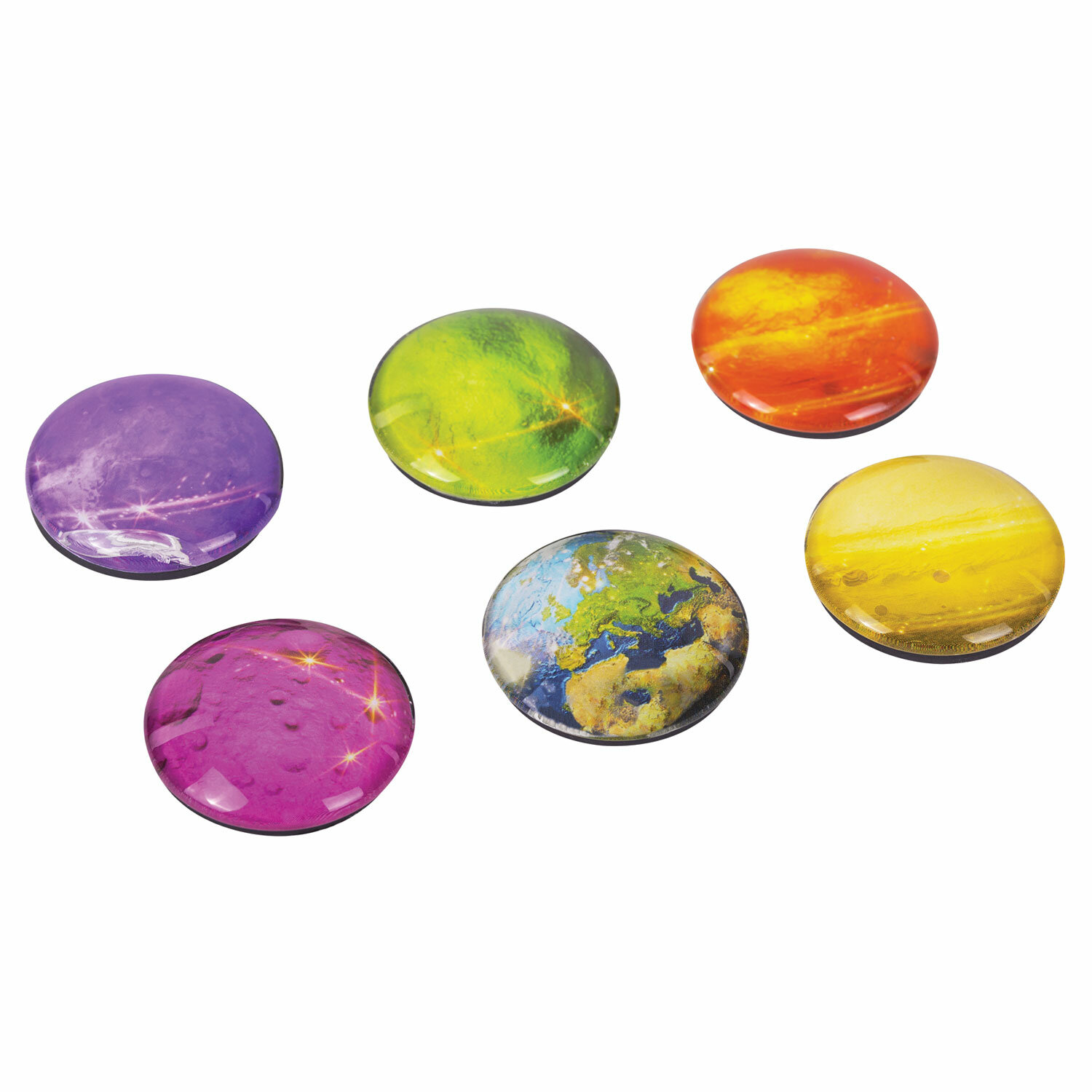 - Магниты стеклянные 35 мм для досок магнитно-маркерных, НАБОР 6 шт., "3D Планеты", BRAUBERG Glass, круглые, блистер, 272517