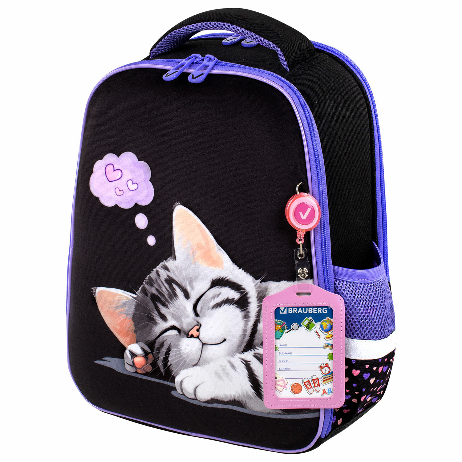 *Заключение №03/12 от 24.12.2021. Ранец BRAUBERG FIT, 2 отделения, Sleeping kitten, велюровая панель, 38х27х14 см, 273107
