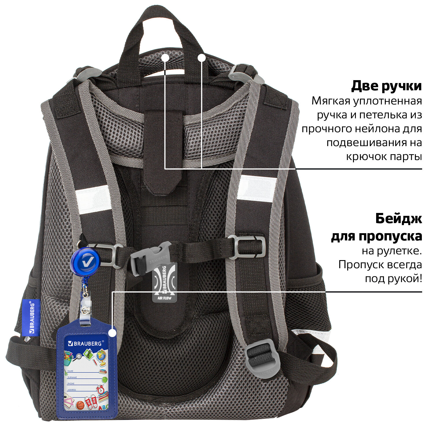 Ранцы BRAUBERG PREMIUM протестированы НИИ гигиены и охраны здоровья детей и подростков ФГАУ t;Национальный медицинский исследовательский центр здоровья детейt;. В рамках проведенных исследований* было установлено, что конструкции и материалы ученических ранцев соответствуют современным эргономическим требованиям и способствуют формированию здоровой осанки у школьников.