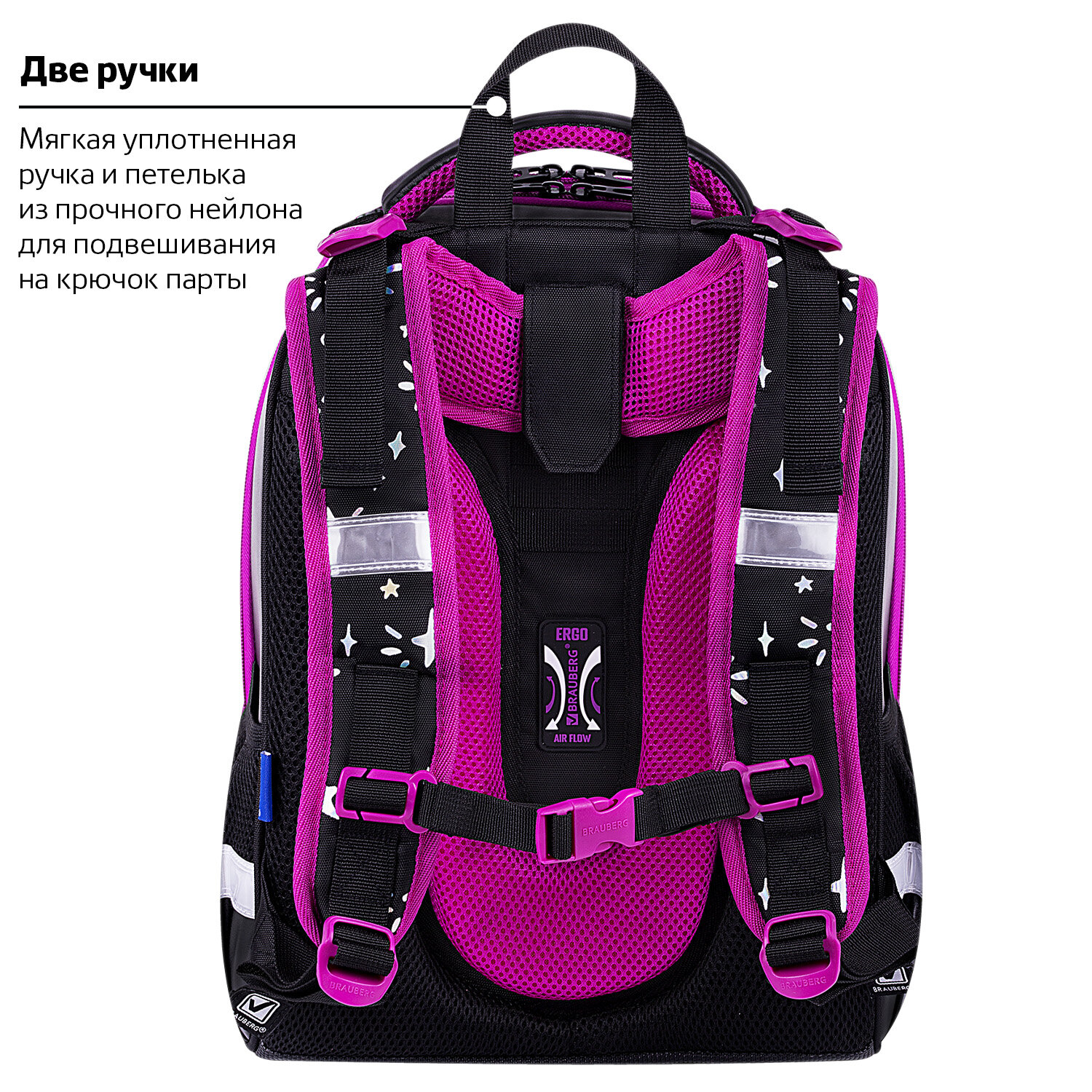 Ранцы BRAUBERG SHINY протестированы НИИ гигиены и охраны здоровья детей и подростков ФГАУ t;Национальный медицинский исследовательский центр здоровья детейt;. В рамках проведенных исследований* было установлено, что конструкции и материалы ученических ранцев соответствуют современным эргономическим требованиям и способствуют формированию здоровой осанки у школьников.