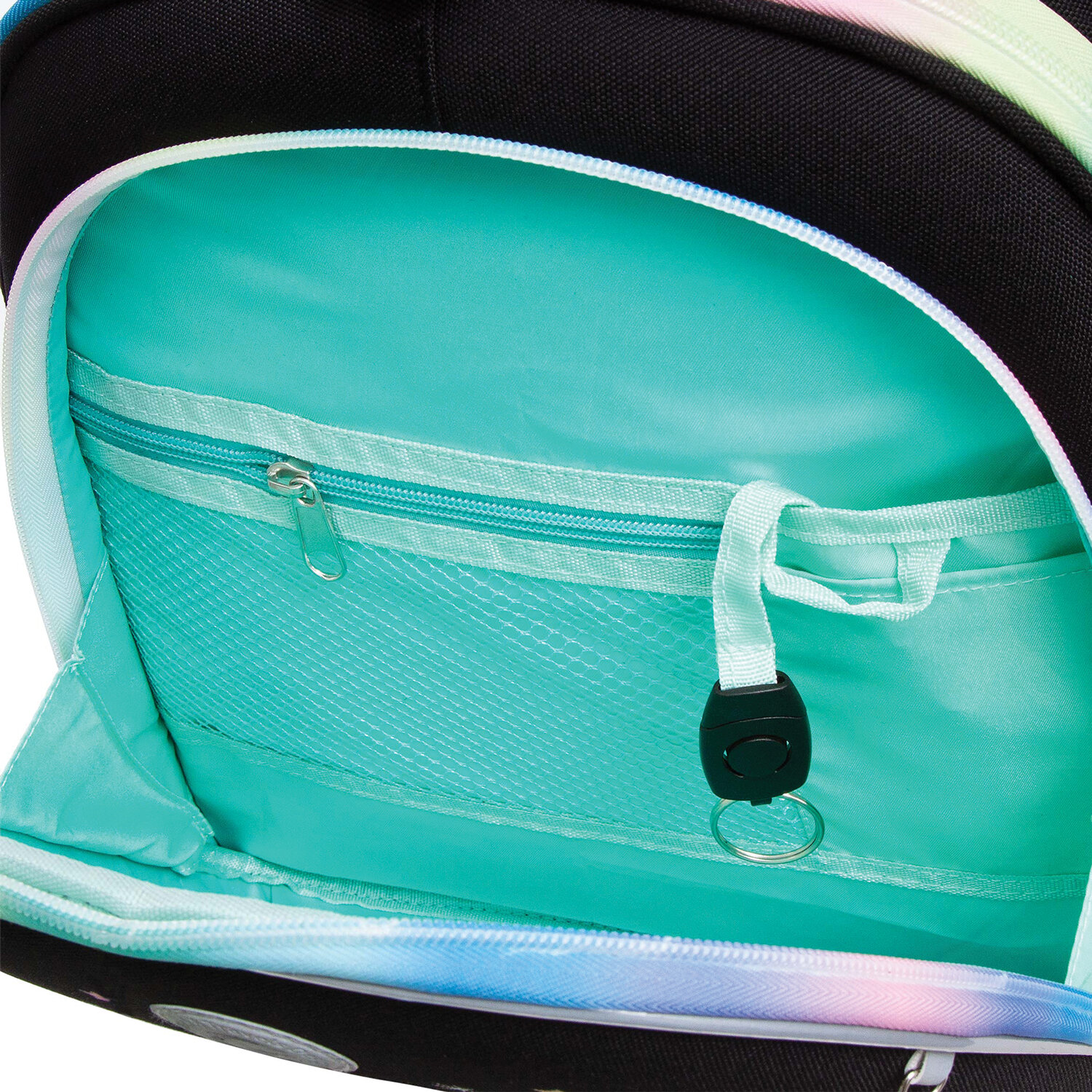 - Ранец GRIZZLY анатомическая спинка, c брелоком, для девочек, RAINBOW CAT, 36х28х20 см, RAz-486-2/1