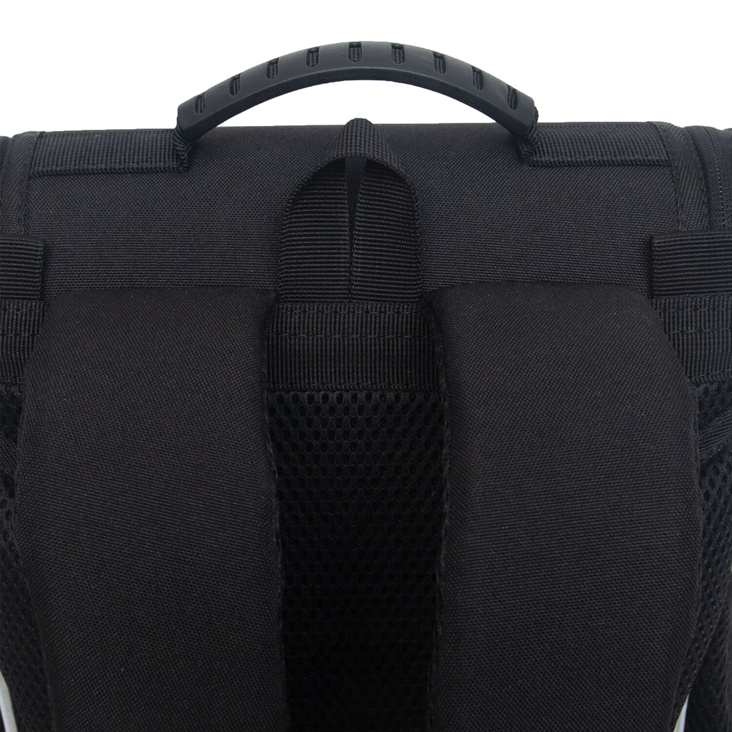 У ранца одно большое отделение с разделителем для учебных пособий формата А4. Ранец широко открывается, обеспечивая легкий доступ к содержимому. У него есть фронтальный карман на молнии для разных мелочей, удобная ручка и два вместительных боковых кармана. В комплекте к ранцу прилагается мешок для обуви.