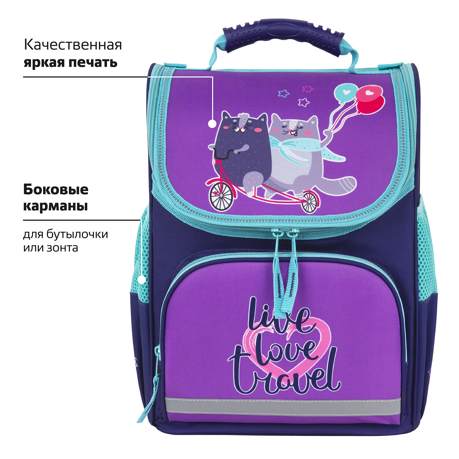 - Ранец ПИФАГОР BASIC, 1 отделение, 3 кармана, эргономичная спинка, "Bike cats", 35х28х18 см, 272049