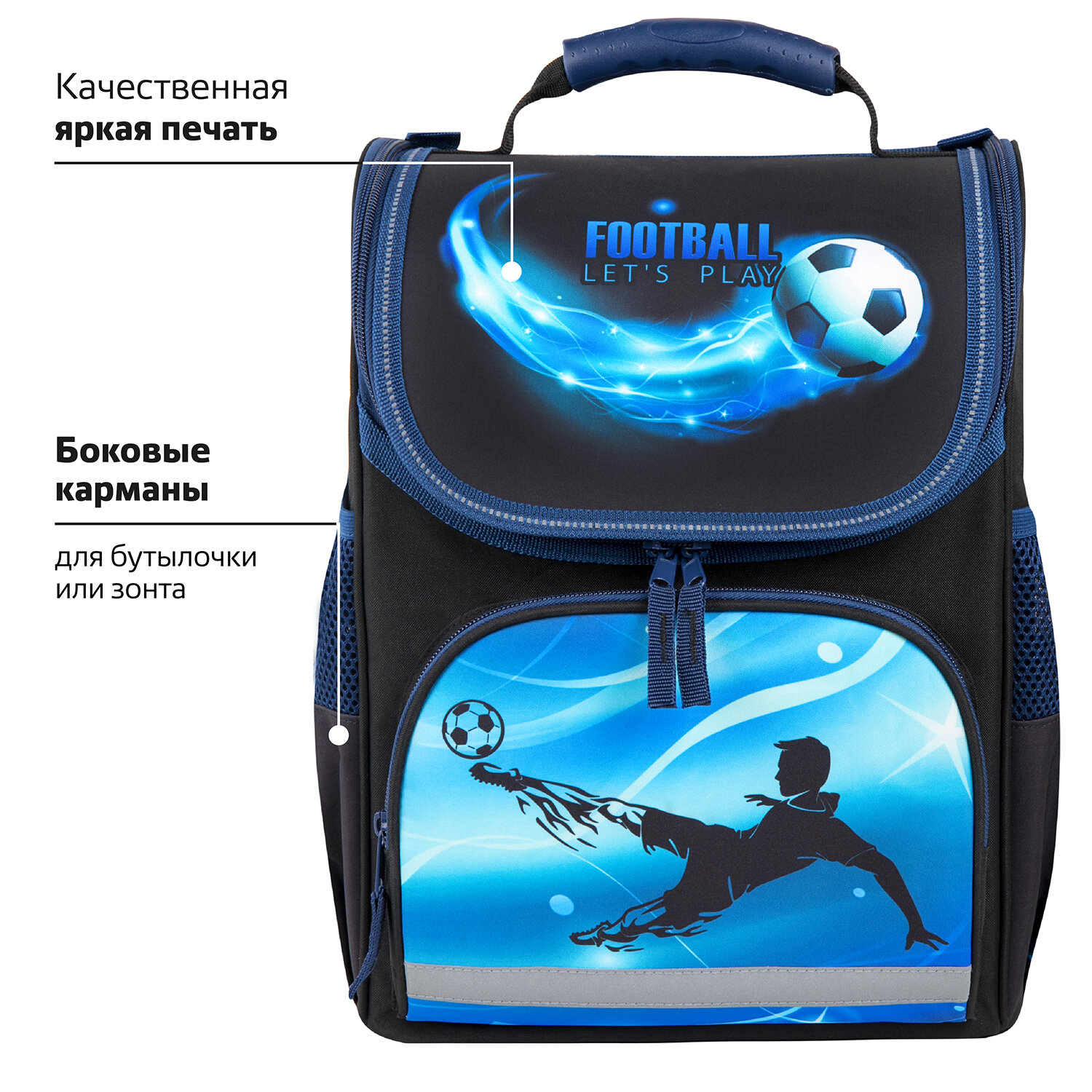 Ранец ПИФАГОР BASIC, 1 отделение, 3 кармана, эргономичная спинка, "Football player", 35х28х18 см, 271375