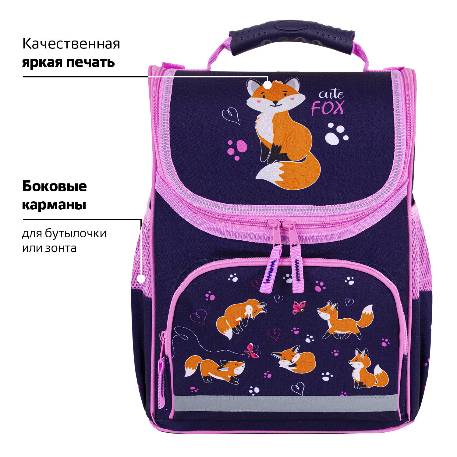 - Ранец ПИФАГОР BASIC, 1 отделение, 3 кармана, эргономичная спинка, "Playing foxes", 35х28х18 см, 273136