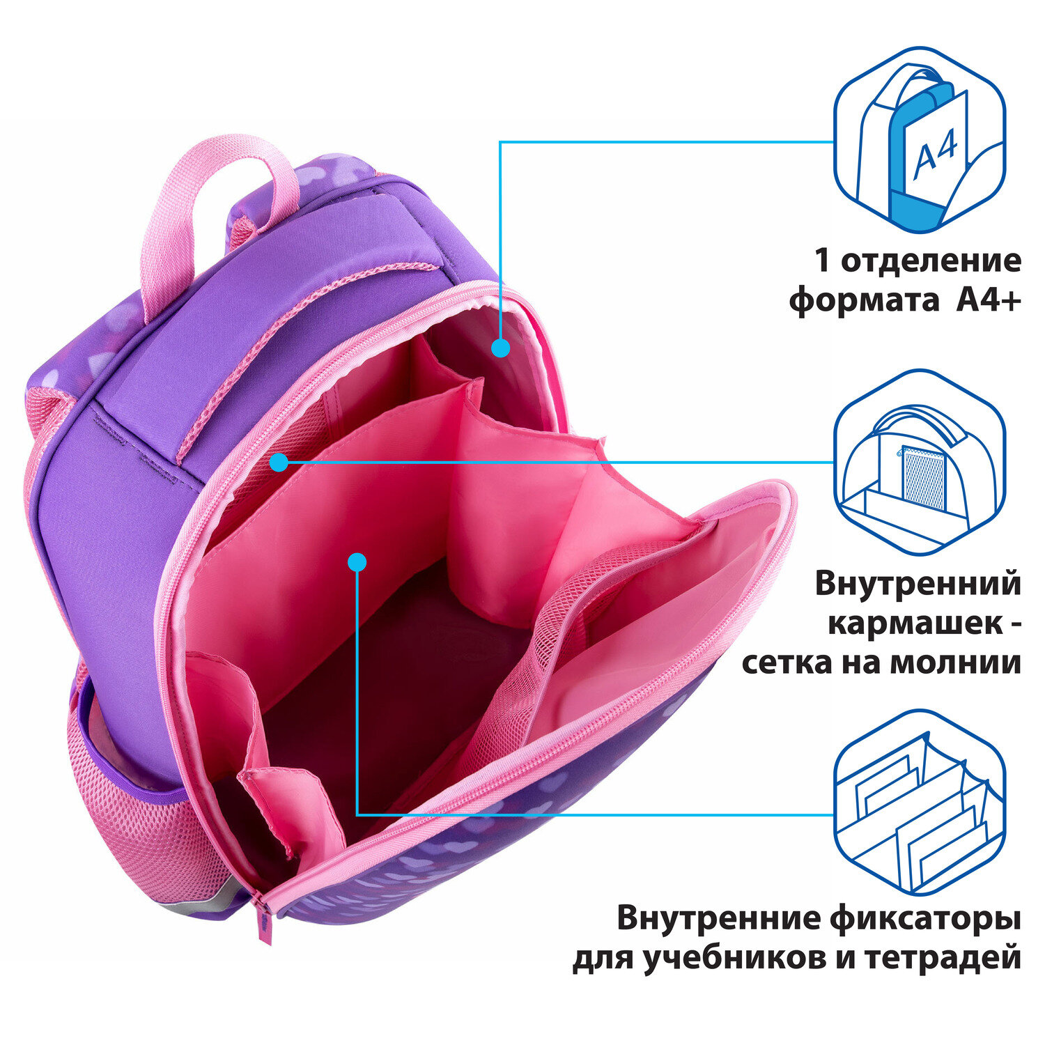 Ранец упакован в плотный ПЭТ пакет с замком Zip Lock с ручками, который сохранит качество и товарный вид при хранении и транспортировке. Ранец ПИФАГОР EVA BASIC, 1 отделение, "Fancy girl", 39х30х16 см, 270690