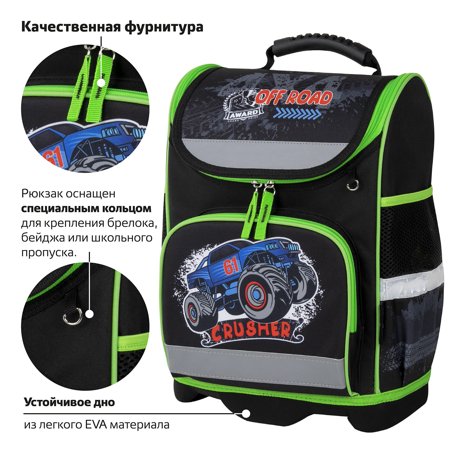 - Ранец ЮНЛАНДИЯ WISE, 1 отделение, 3 кармана, устойчивое дно, "Crusher", 37x29х15 см, 271399