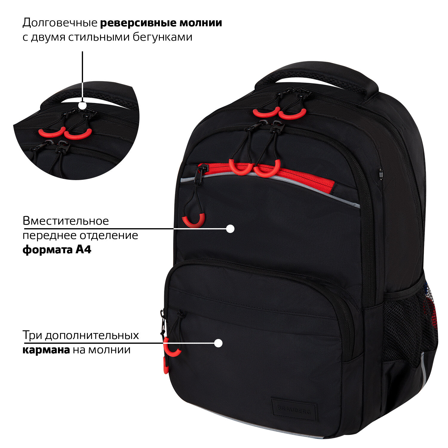 - Рюкзак BRAUBERG FORCE, 2 отделения, 5 карманов, "Bright red", 39х28х17 см, 273154
