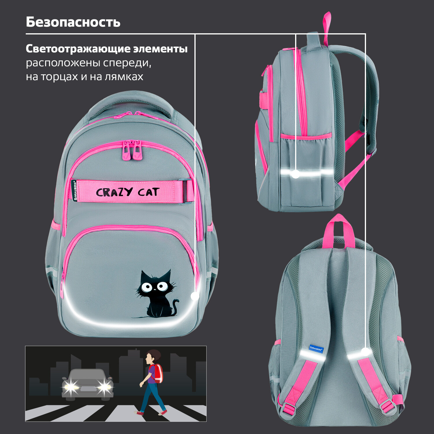 - Рюкзак BRAUBERG MOTION, 2 отделения, 3 кармана, "Crazy cat", 41х28х17 см, 273115