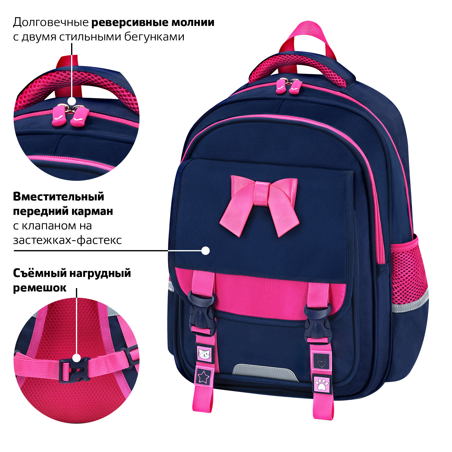 Рюкзак упакован в плотный ПЭТ-пакет с замком Zip Lock с ручками – это поможет сохранить качество и товарный вид изделия при хранении и транспортировке. Рюкзак BRAUBERG SNAP, 2 отделения, 3 кармана, "Elegant bow", 39х28х16 см, 273129