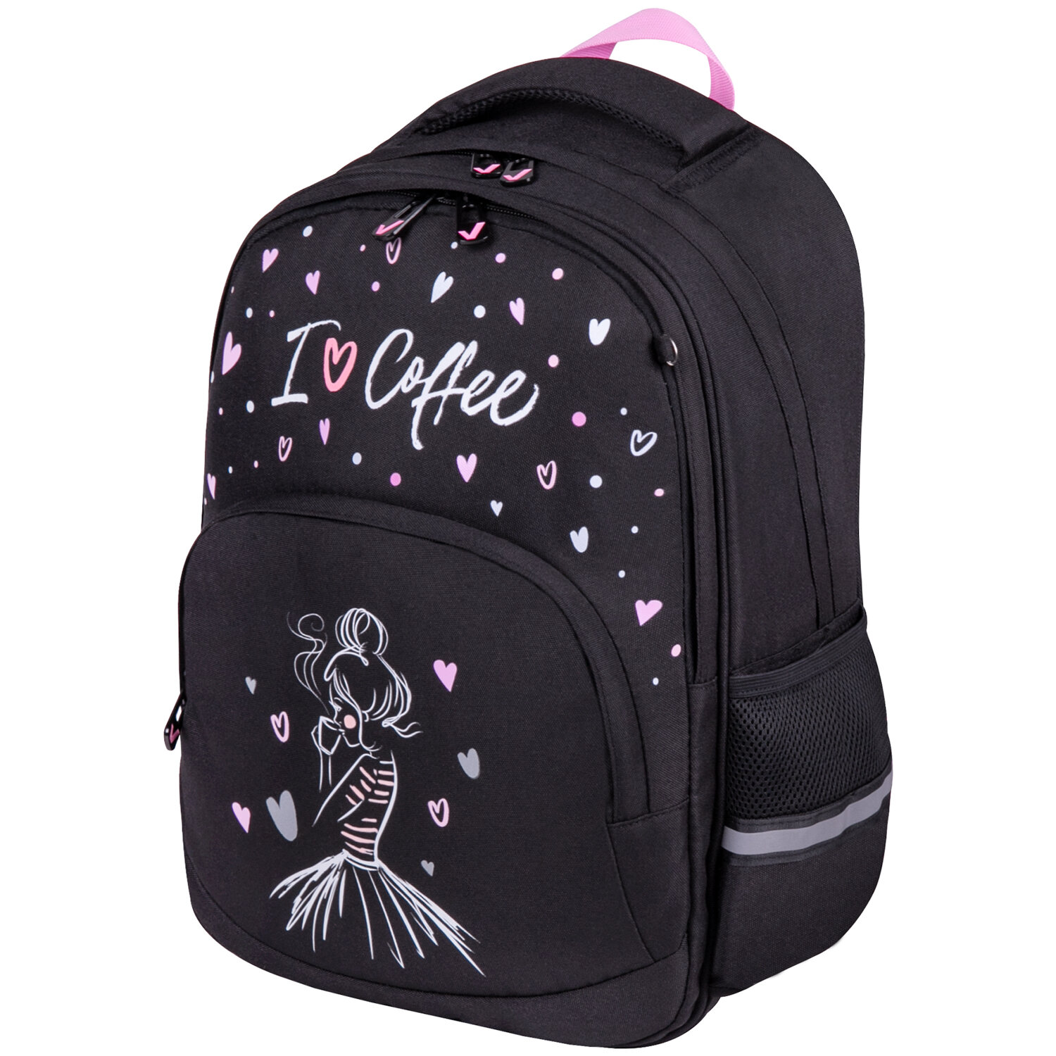 Рюкзак BRAUBERG SOFT, 2 отделения, 3 кармана, "I love coffee", СВЕТЯЩИЙСЯ, 40х31х15 см, 270611