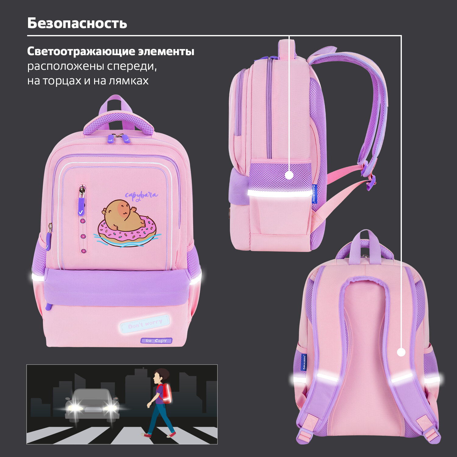 - Рюкзак BRAUBERG STAR, 1 отделение, 5 карманов, "Capybara", розовый, 40x29x13 см, 272062