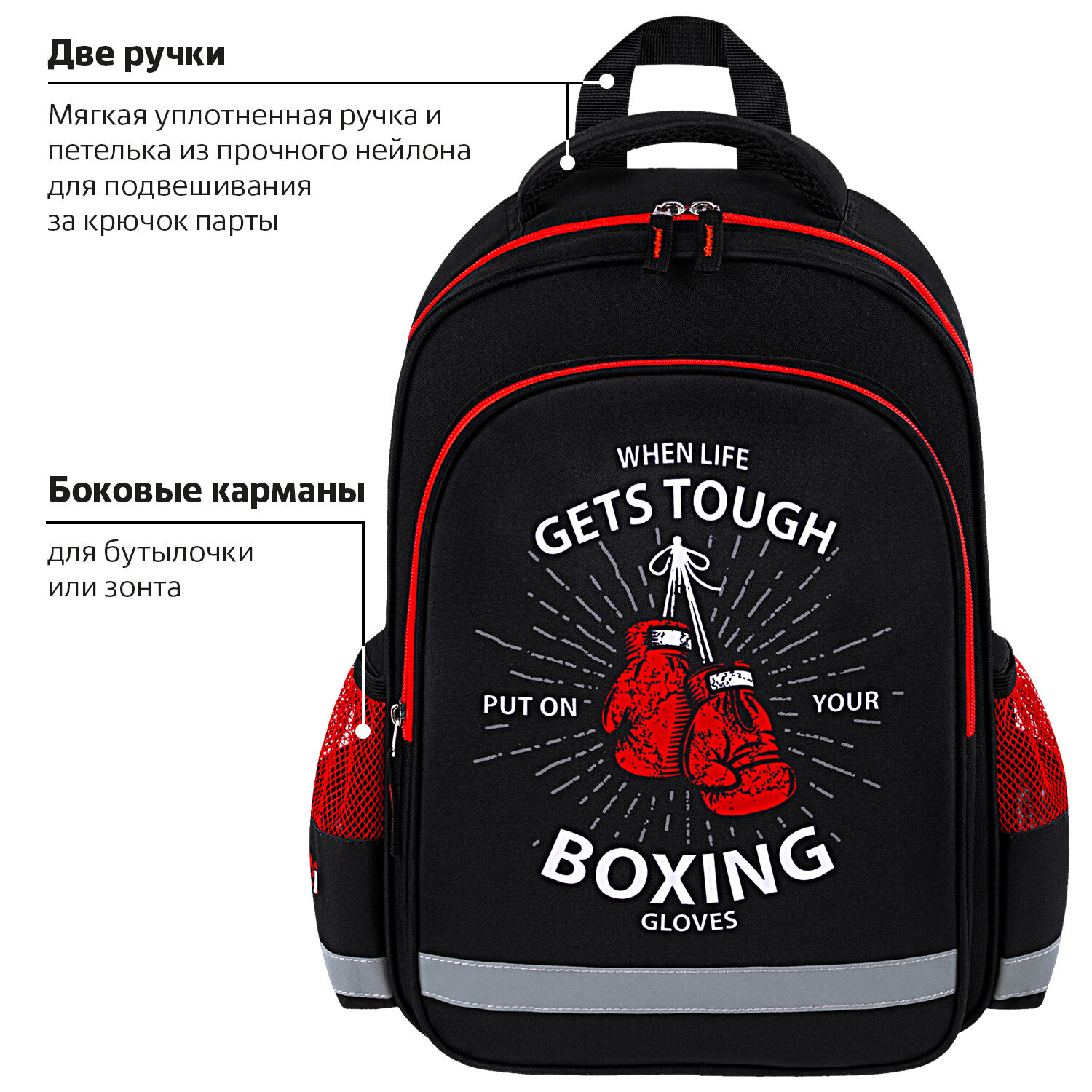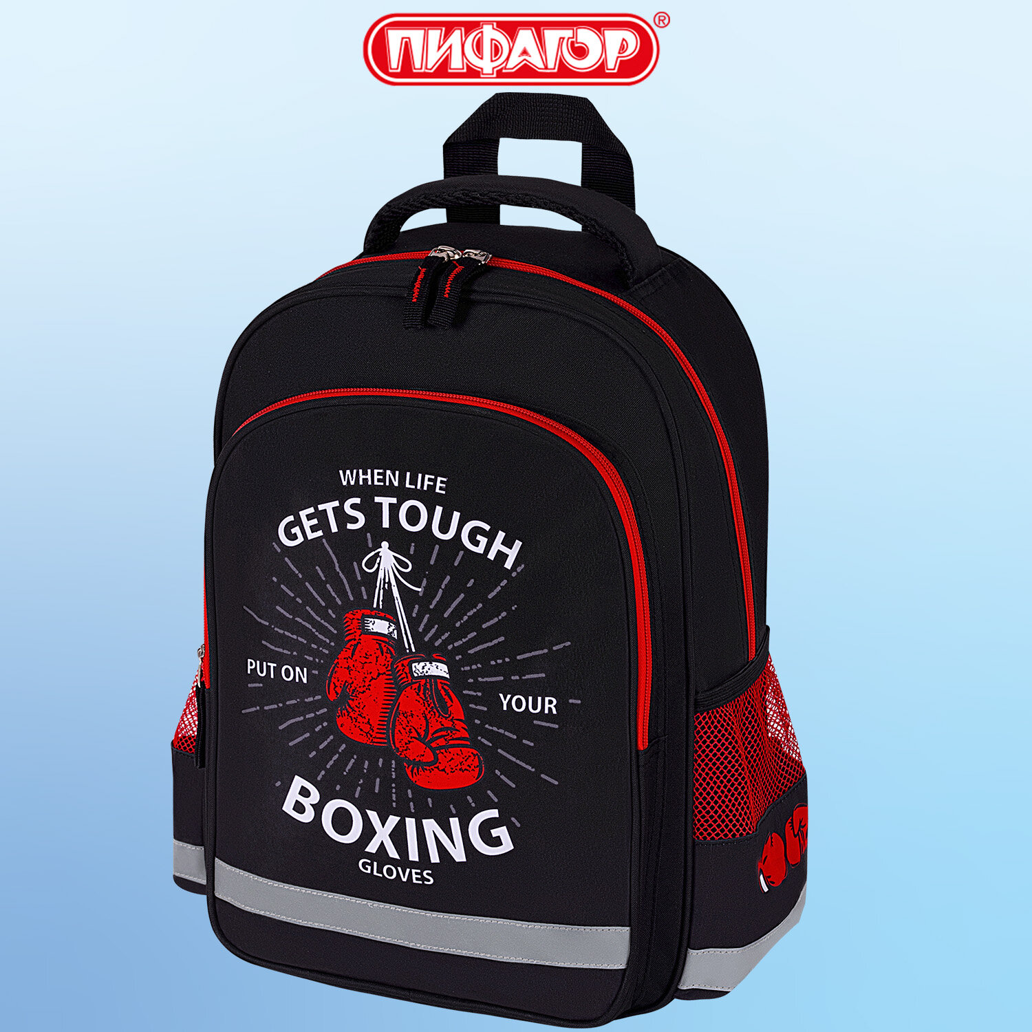 ПИФАГОР – это демократичные по ценам и динамично развивающиеся линейки товаров для школы. Рюкзак ПИФАГОР SCHOOL, 1 отделение, 3 кармана, "Boxing", 38x28х14 см, 272077