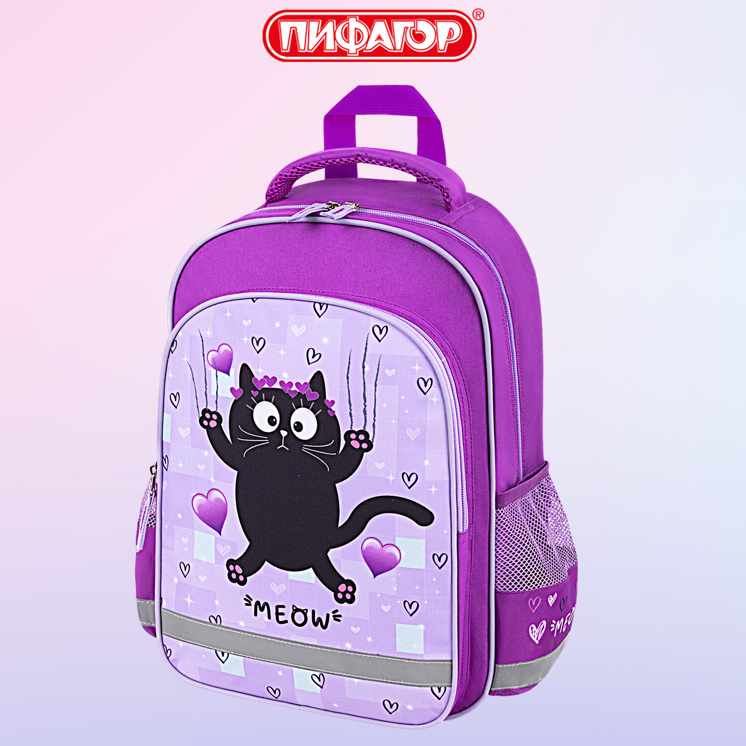 ПИФАГОР – это демократичные по ценам и динамично развивающиеся линейки товаров для школы. Рюкзак ПИФАГОР SCHOOL, 1 отделение, 3 кармана, "Falling cat", 38x28х14 см, 272082