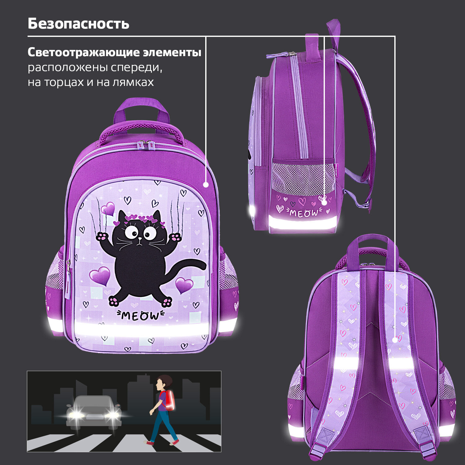 - Рюкзак ПИФАГОР SCHOOL, 1 отделение, 3 кармана, "Falling cat", 38x28х14 см, 272082