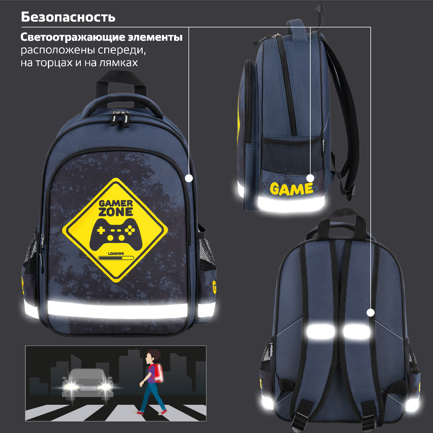 Рюкзак ПИФАГОР SCHOOL, 1 отделение, 3 кармана, "Game zone", 38x28х14 см, 271407