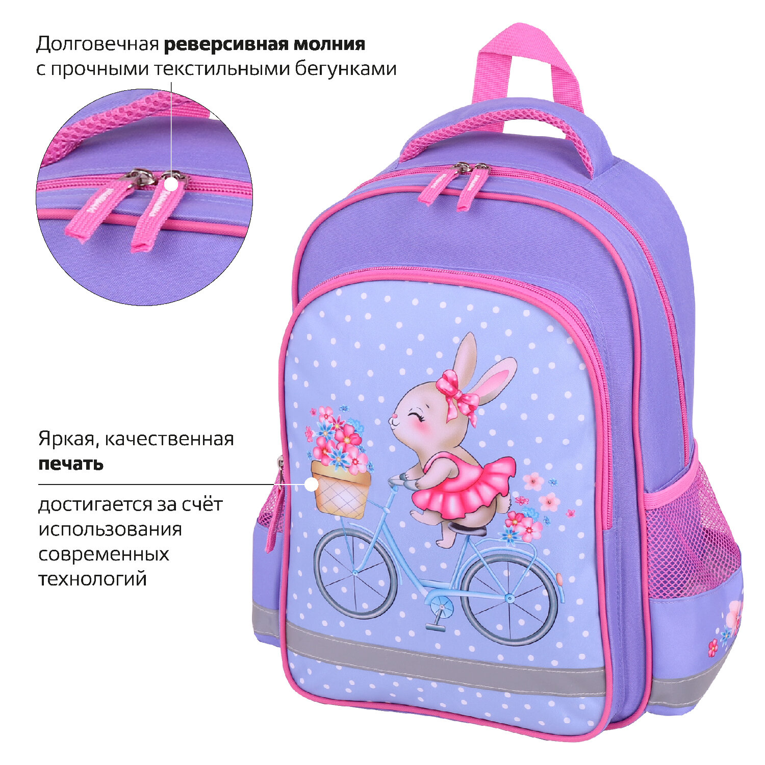 Рюкзак имеет 1 вместительное отделение на молнии, 1 передний и 2 боковых кармана. Оптимальный размер рюкзака позволяет вместить все необходимые школьные принадлежности. Мягкие широкие регулируемые лямки способствуют оптимальному распределению веса.