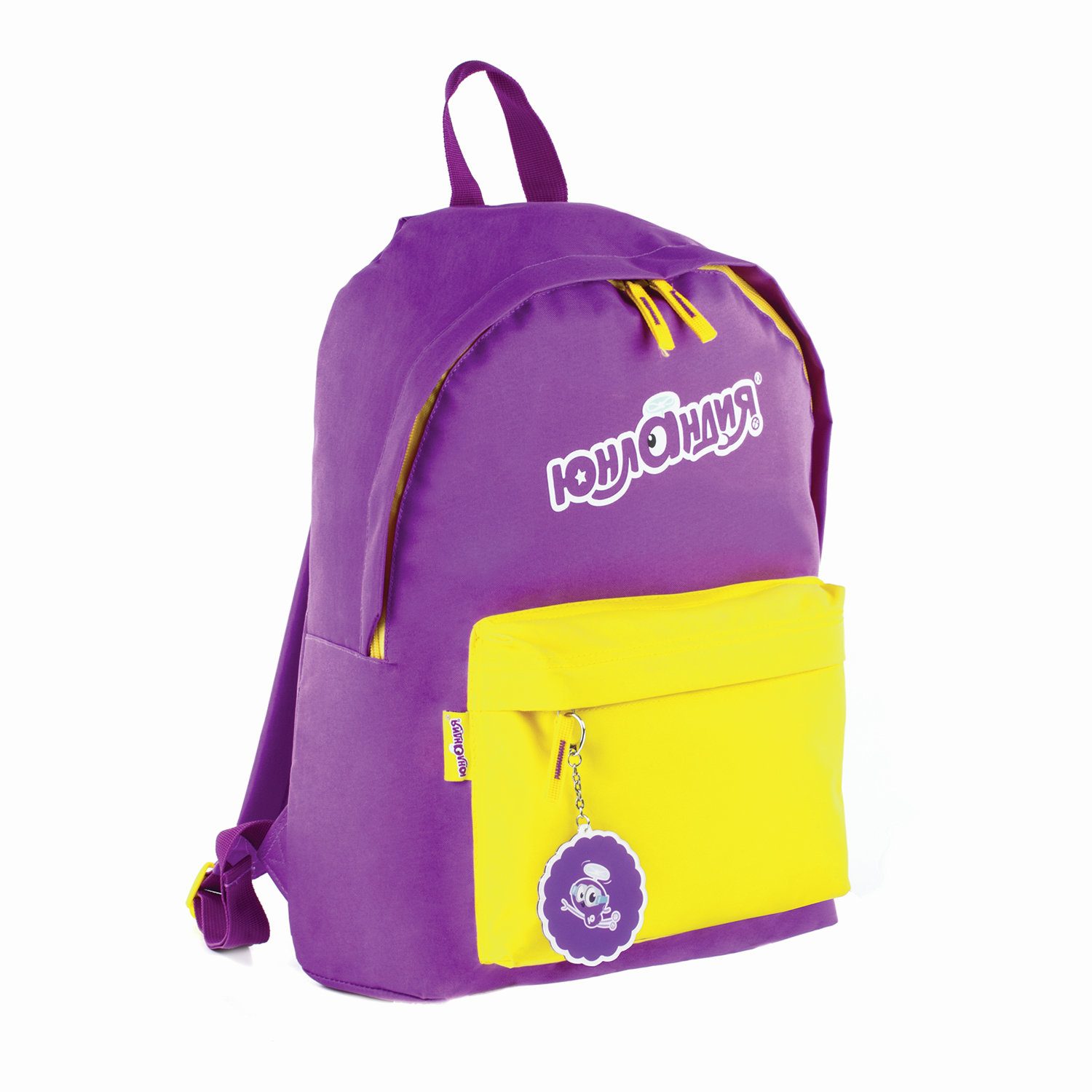 Универсальный рюкзак предназначен для школьников от 7 лет. Объем, равный 16 л, позволит вместить все необходимое для учебного процесса. Выполнен из прочного полиэстера, что обеспечивает максимально длительный срок службы. Регуляторы длины плечевых лямок сделаны из прочного и износостойкого пластика, гарантируют долговечность при использовании. Рюкзак имеет удобную ручку из ткани для переноски и подвешивания. Легкий и вместительный, он имеет 1 отделение, 1 фронтальный карман и игрушку-брелок в комплекте. Стандартные размеры и вес обеспечат комфортное ношение. Рюкзак ЮНЛАНДИЯ с брелоком, универсальный, фиолетовый, 44х30х14 см, 227955