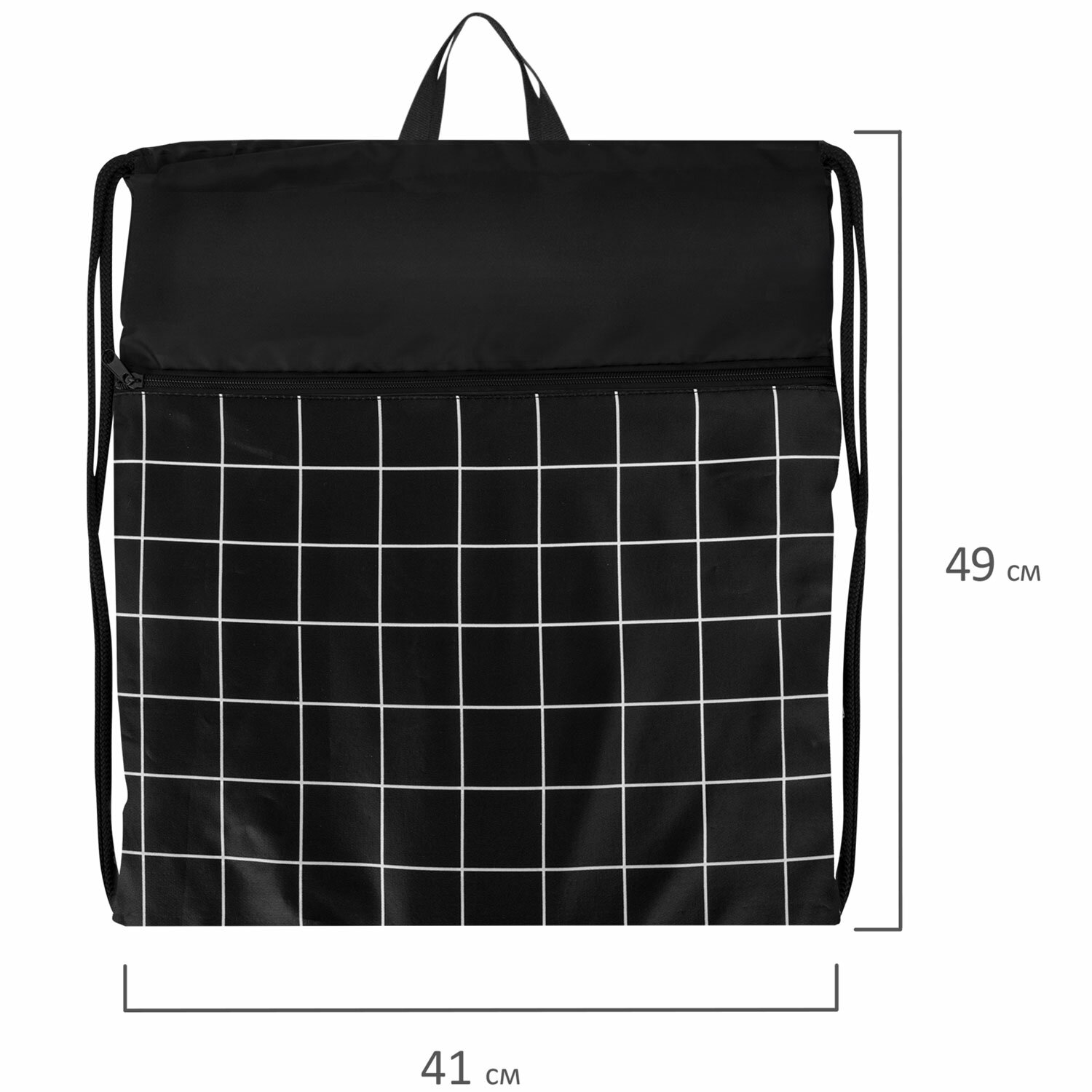 - Мешок для обуви BRAUBERG БОЛЬШОЙ, с ручкой, карман на молнии, сетка, 49х41 см, "Checkered", 272404