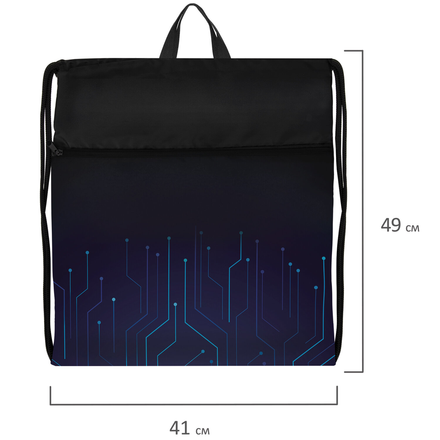 - Мешок для обуви BRAUBERG БОЛЬШОЙ, с ручкой, карман на молнии, сетка для вентиляции, 49х41 см, "Electro", 271061