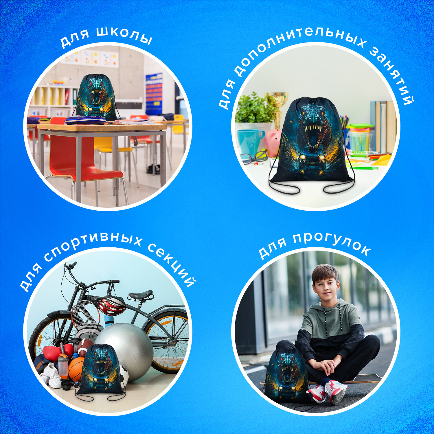 Мешок для обуви BRAUBERG KIDS, с петлей, 42х34 см, "Dino chase", 272416