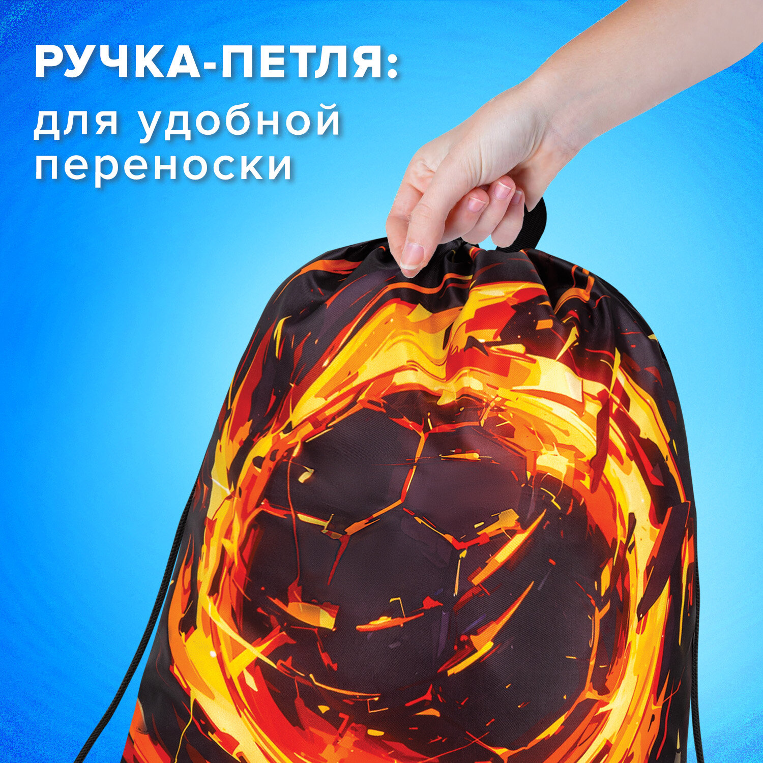 Мешок для обуви BRAUBERG KIDS, с петлей, 42х34 см, "Fire split", 273436