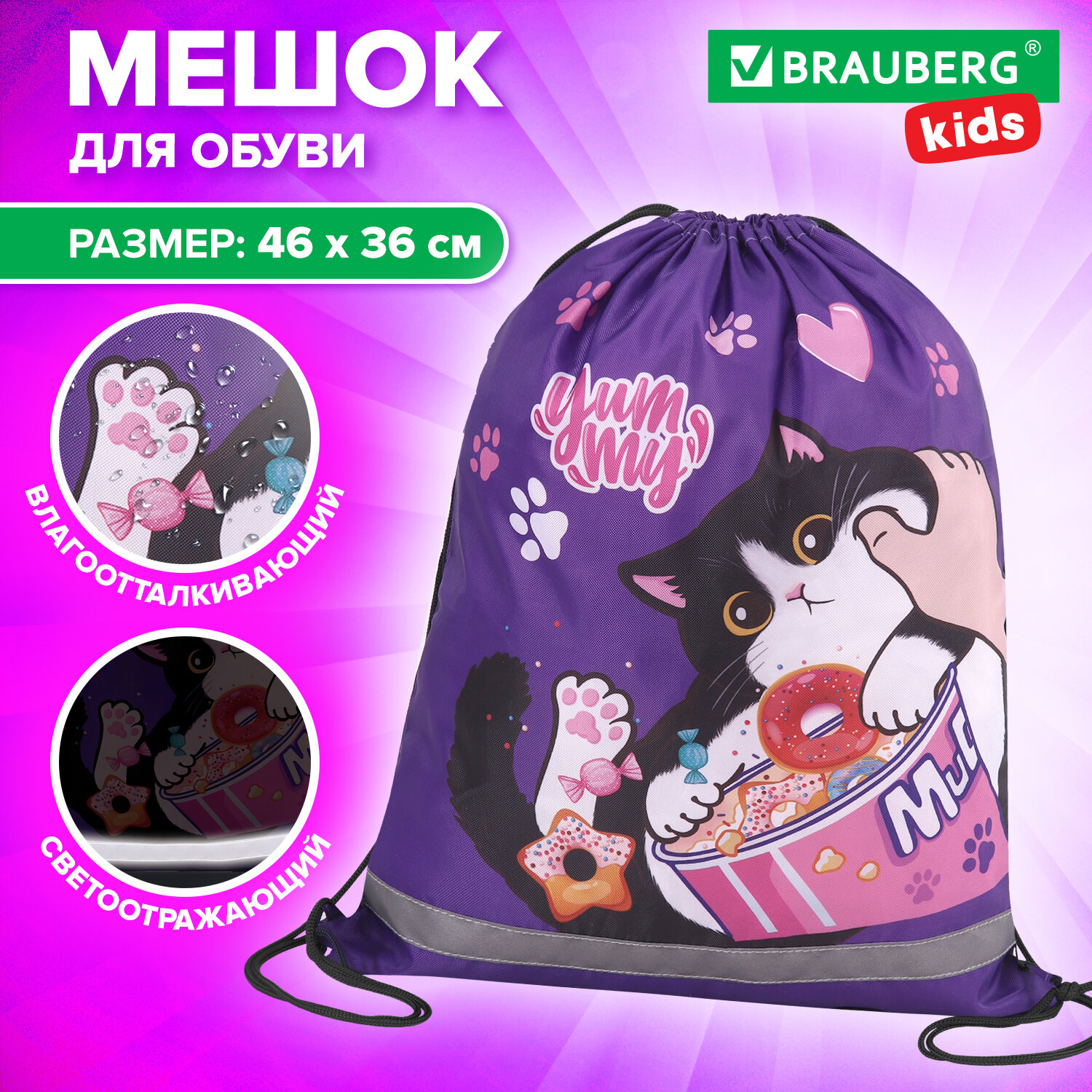 - Мешок для обуви BRAUBERG KIDS, светоотражающая полоса, 46х36 см, "Sweet cheeks", 272390