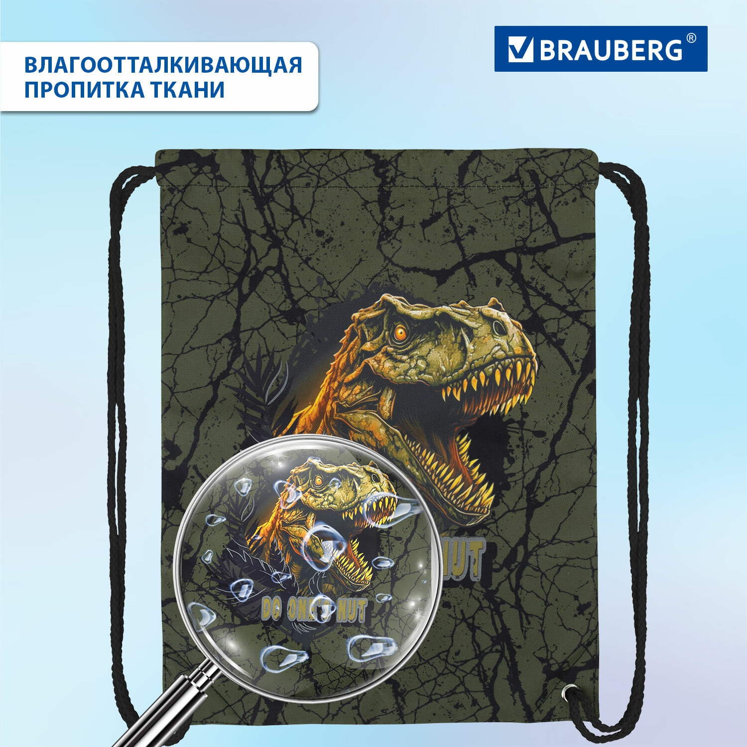 - Мешок для обуви BRAUBERG PREMIUM, карман, подкладка, светоотражайка, 43х33 см, Dino attack, 272424