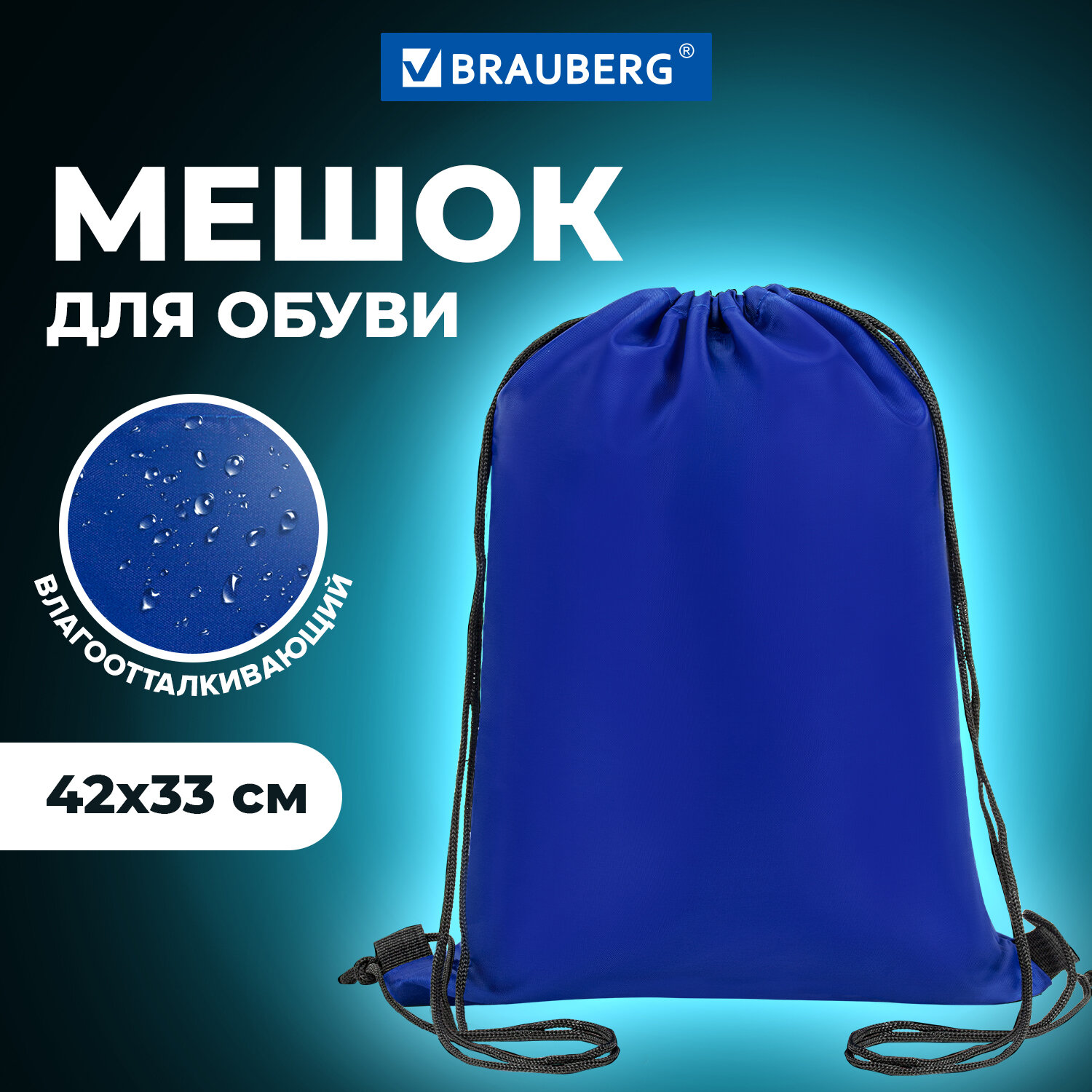 - Мешок для обуви BRAUBERG ПРОЧНЫЙ, на шнурке, синий, 42x33 см, 227140