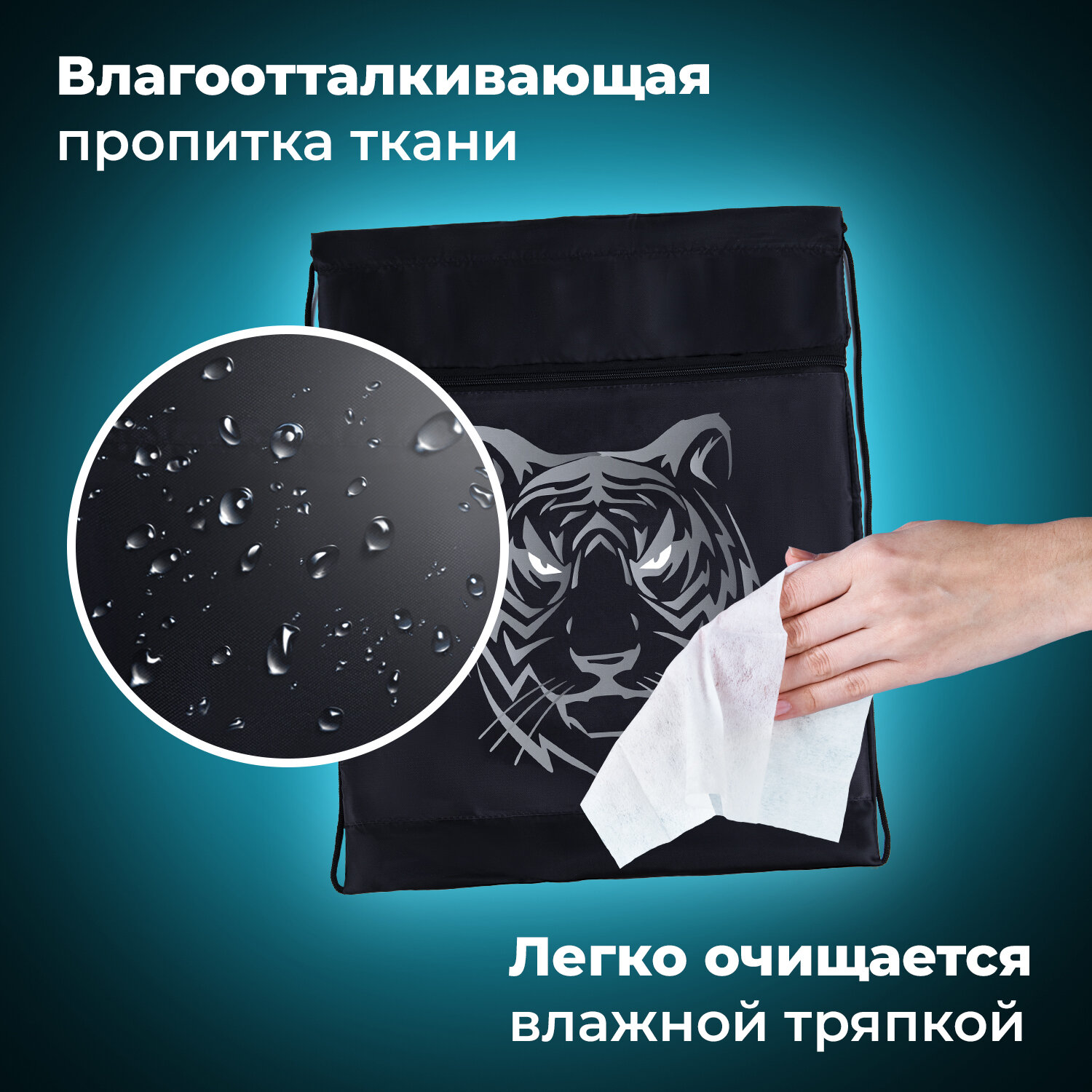 - Мешок для обуви BRAUBERG, с петлёй, карман на молнии, 47х37 см, "Tiger", 271610