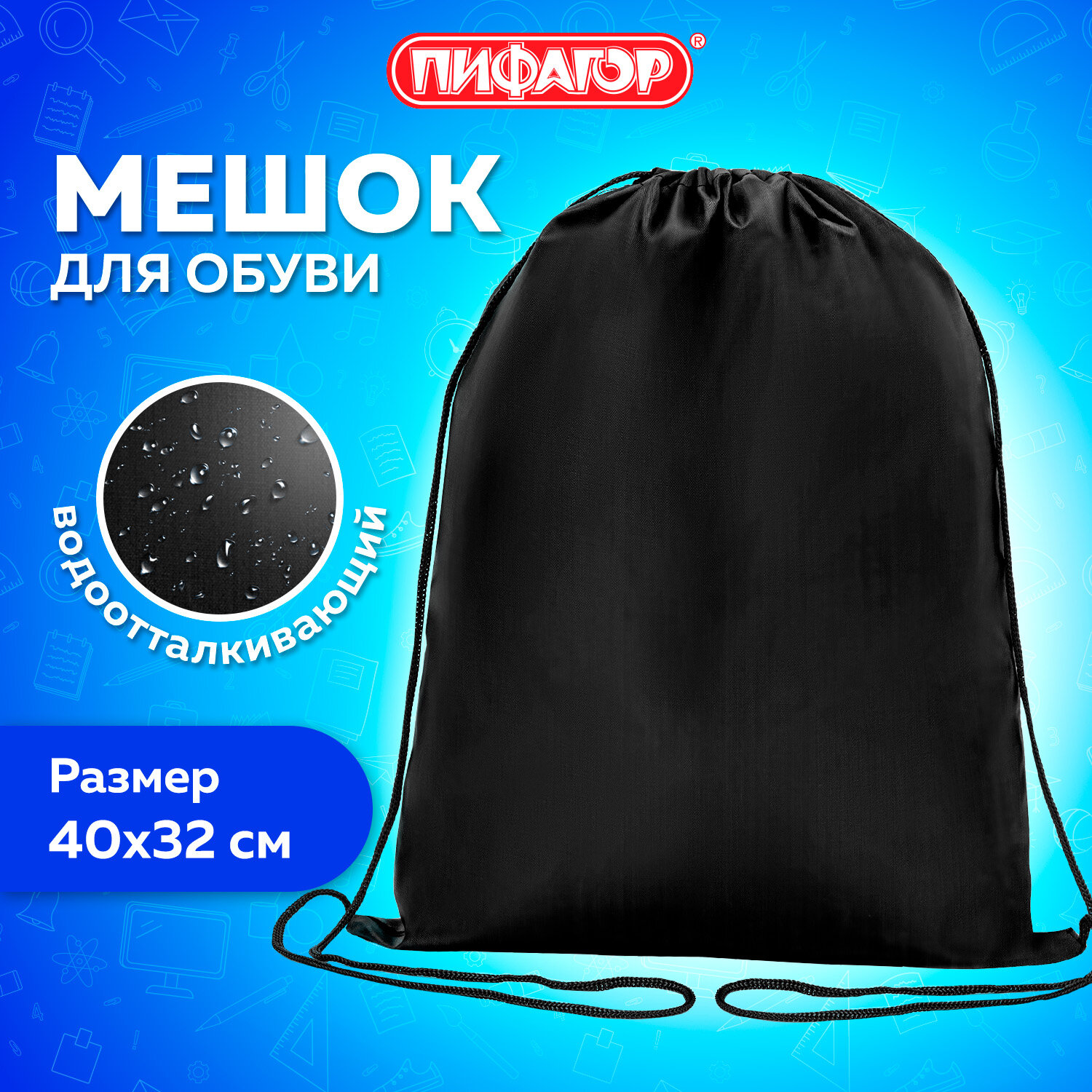 - Мешок для обуви ПИФАГОР, 1 отделение, 40х32 см, черный, 271618
