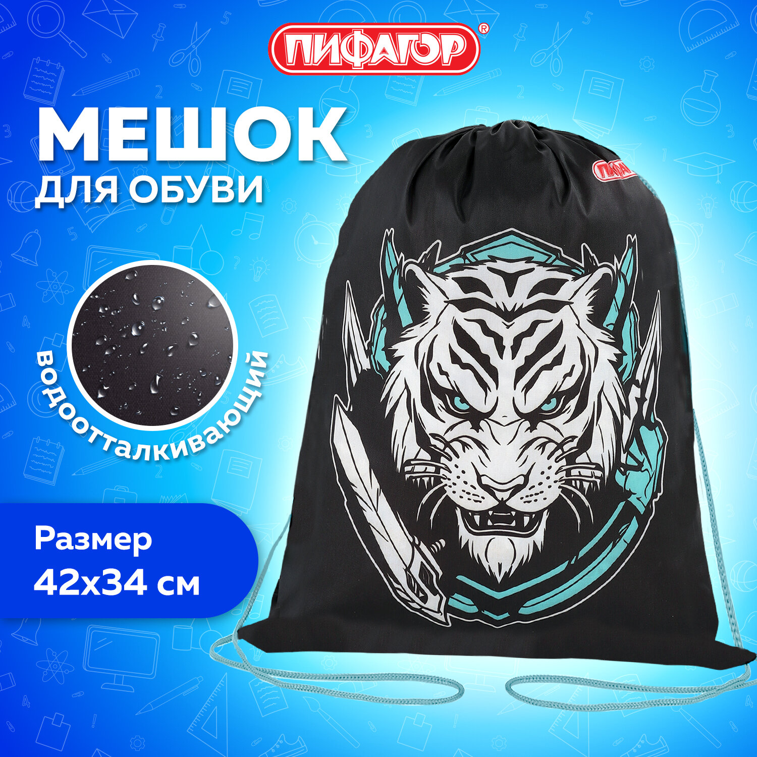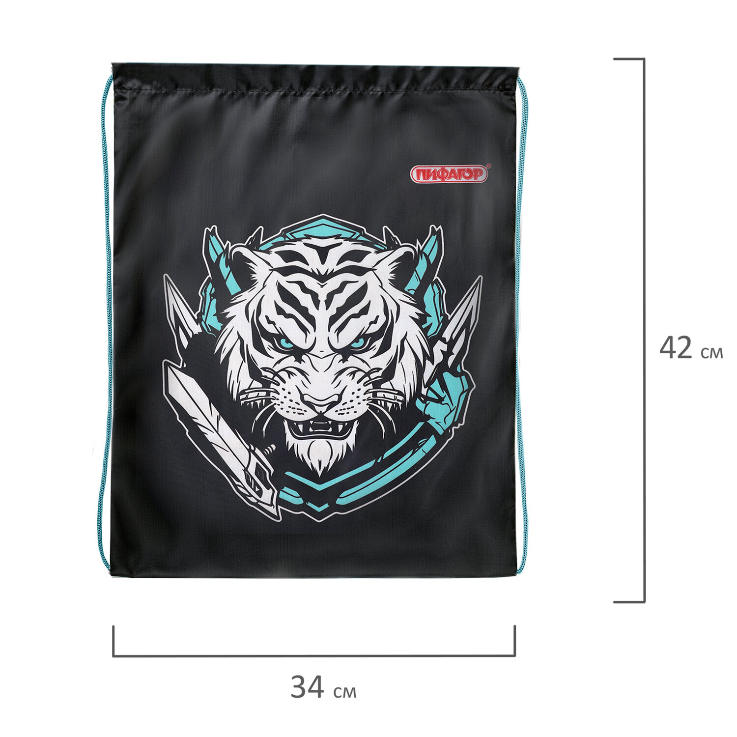 - Мешок для обуви ПИФАГОР, 1 отделение, 42х34 см, "White tiger", 272389