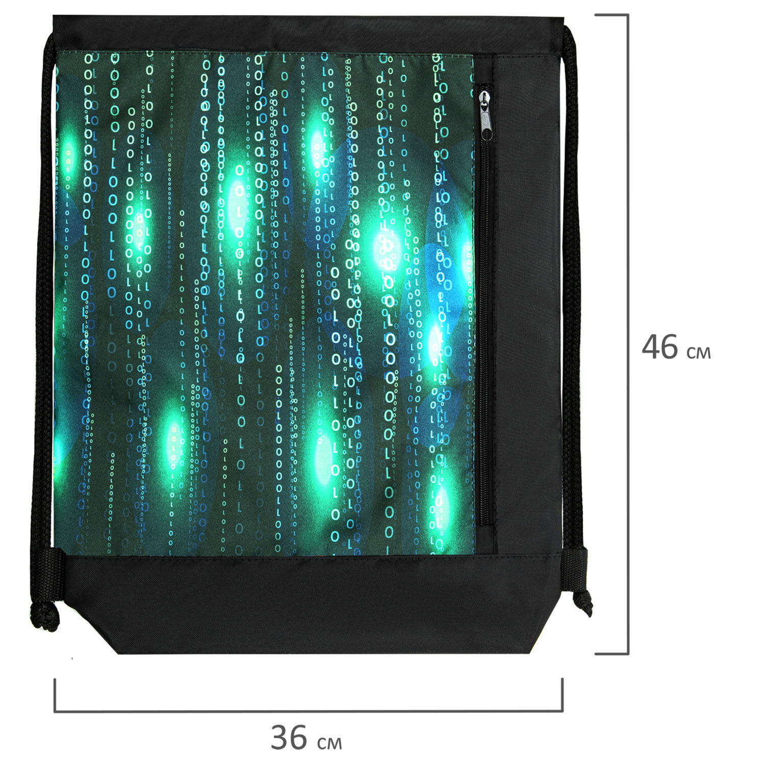 - Мешок для обуви ЮНЛАНДИЯ, с ручками, боковой карман на молнии, 46х36 см, "Matrix", 271068