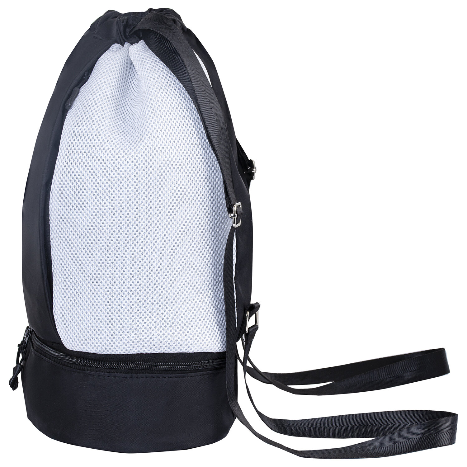 Одно основное отделение, идеально подходит для хранения сменной пары обуви, одежды, учебников и гаджетов. Спереди расположены два кармашка с боковым доступом и застежкой на молнии, что обеспечит быстрый доступ к содержимому. В нижней части мешка большое отделение для обуви с износостойкой влагоотталкивающей подкладкой внутри, с застежкой-молнией вокруг. Также внутри мешок оснащен одним большим влагоотталкивающим отделением для мокрых вещей.