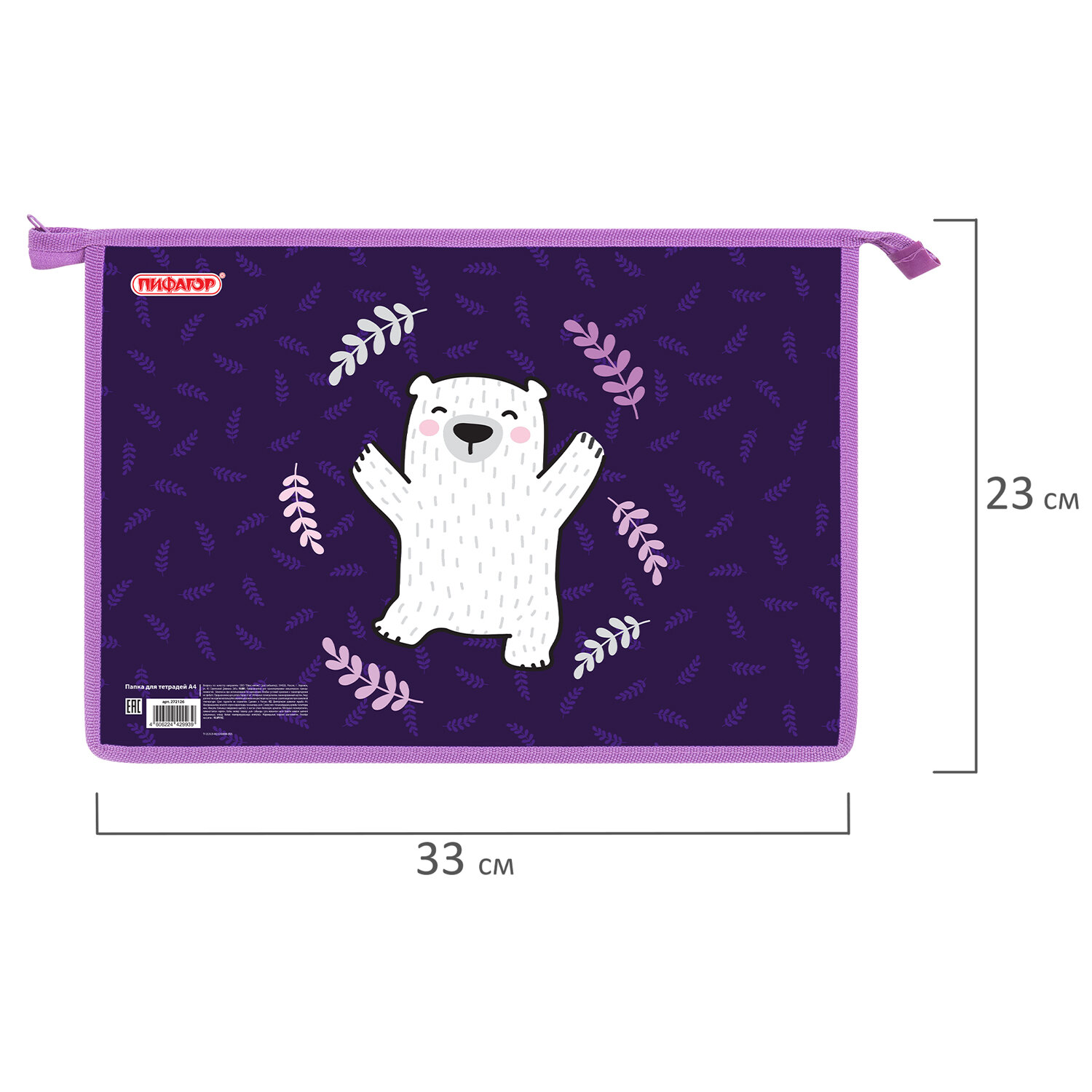 - Папка для тетрадей ПИФАГОР А4, 1 отделение, картон/пластик, на молнии, "Happy bear", 272126
