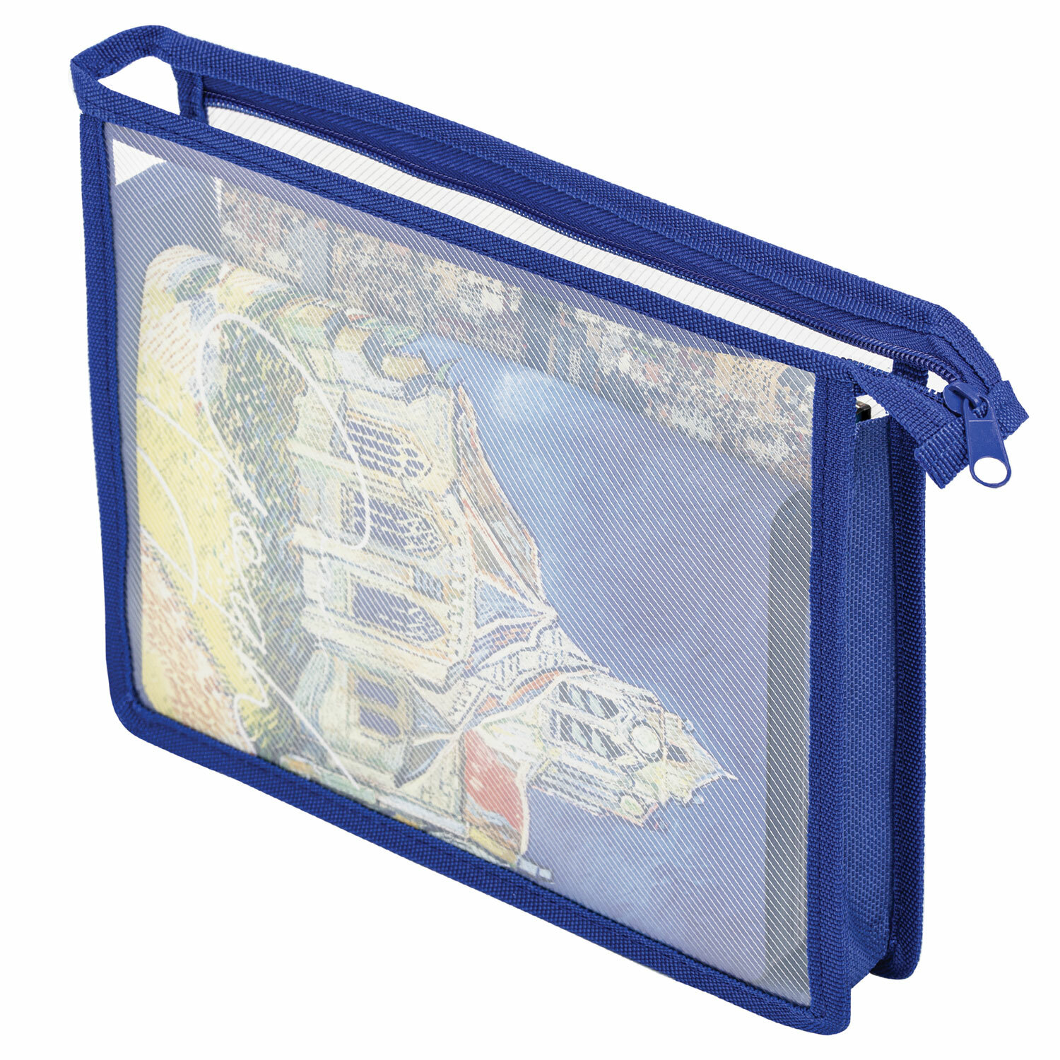 Папка для тетрадей ПИФАГОР А5, пластик, молния сверху, прозрачная, синий, 272115