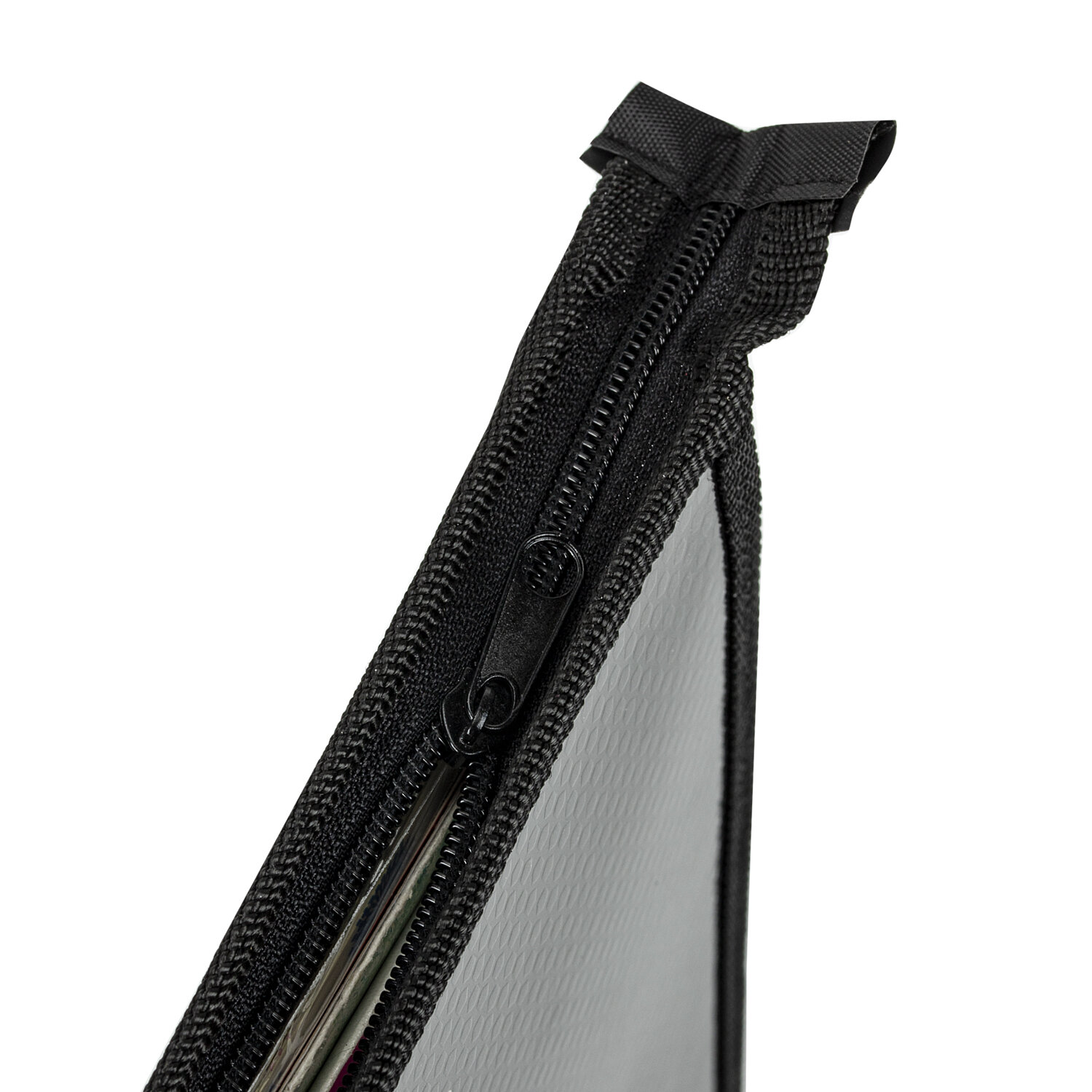 - Застежка-молния расположена по верхнему краю папки.