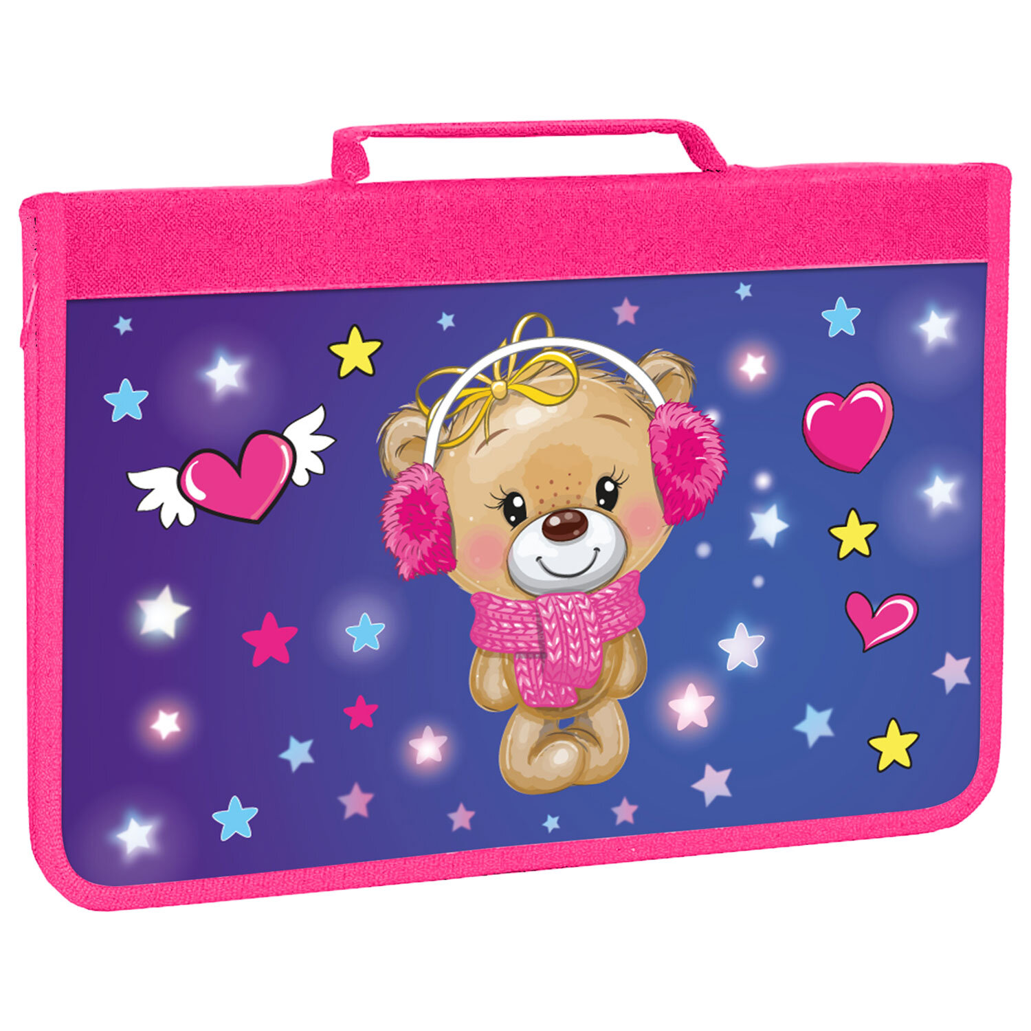 Упакована в индивидуальный прозрачный пакет-термоусадку. Папка для труда на молнии BRAUBERG А4 с ручкой, 1 отделение, картон, органайзер, "Smiling bear", 270990