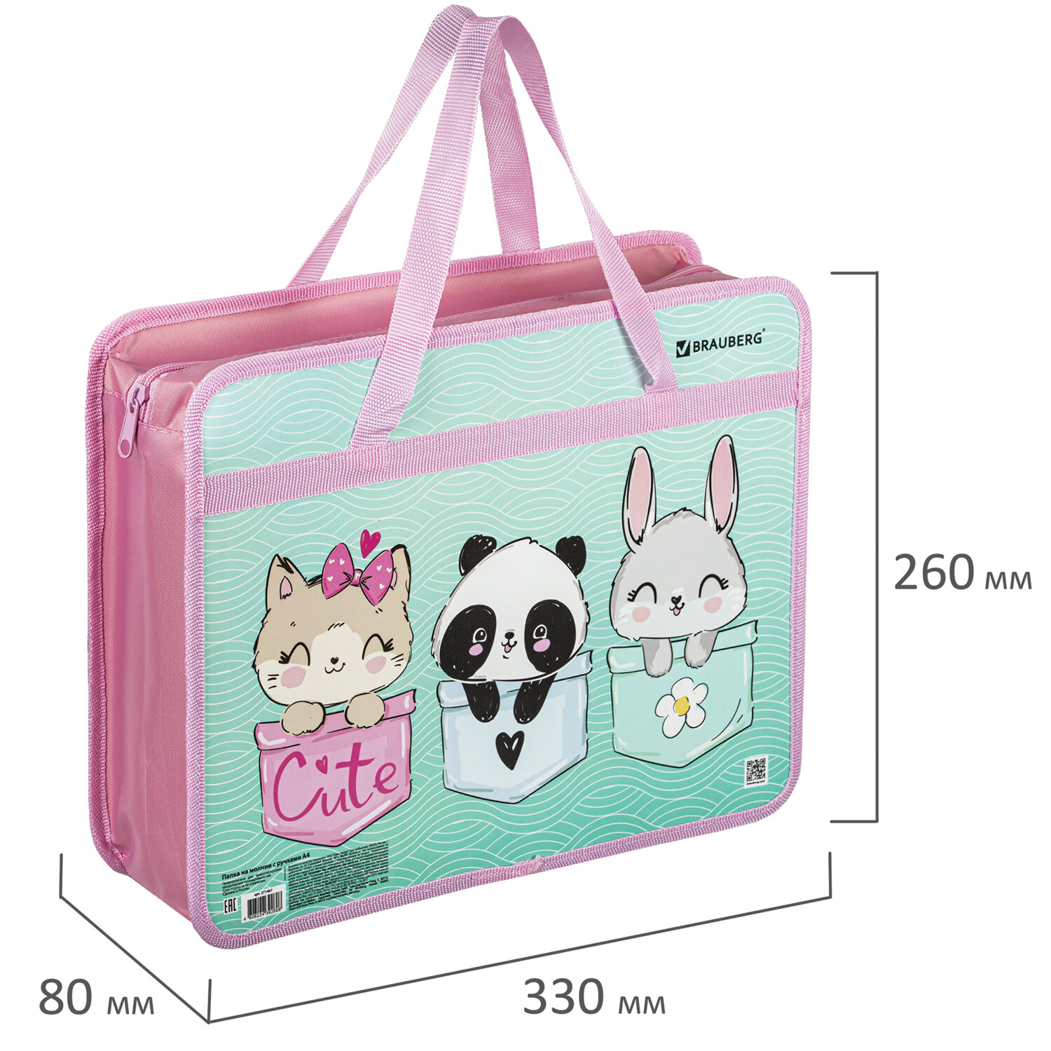 Индивидуальная упаковка (полиэтиленовый пакет с европодвесом) сохраняет товар при транспортировке и позволяет удобно разместить его для клиента. Папка на молнии с ручками BRAUBERG А4, 1 отделение, пластик, 80 мм, "BEST PALS", 271467