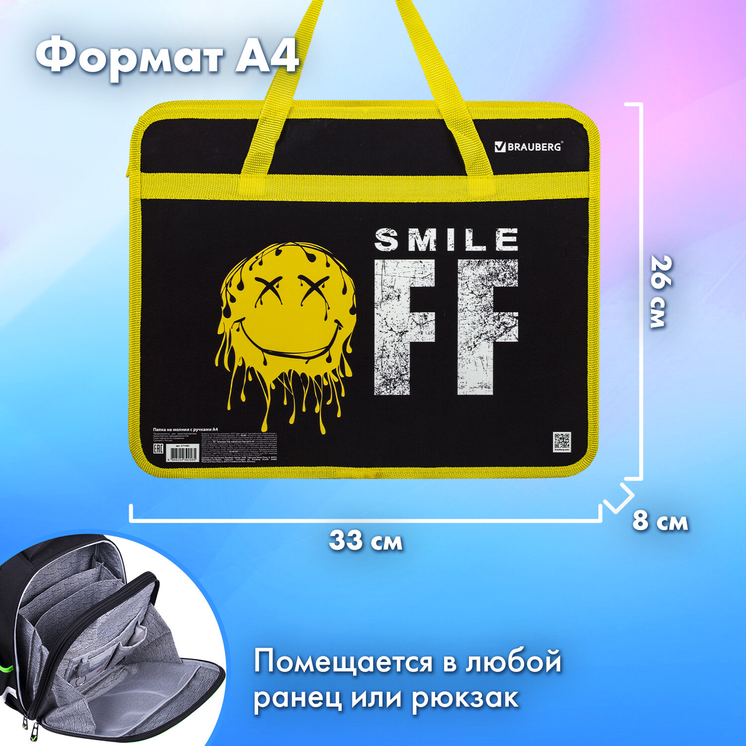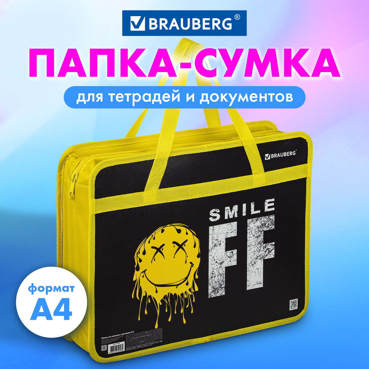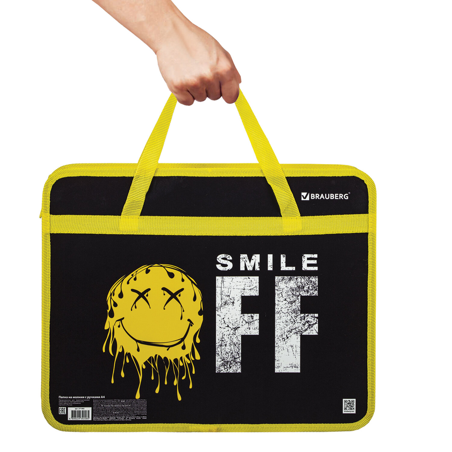 - Папка на молнии с ручками BRAUBERG А4, 1 отделение, пластик, 80 мм, "OFF", 271465