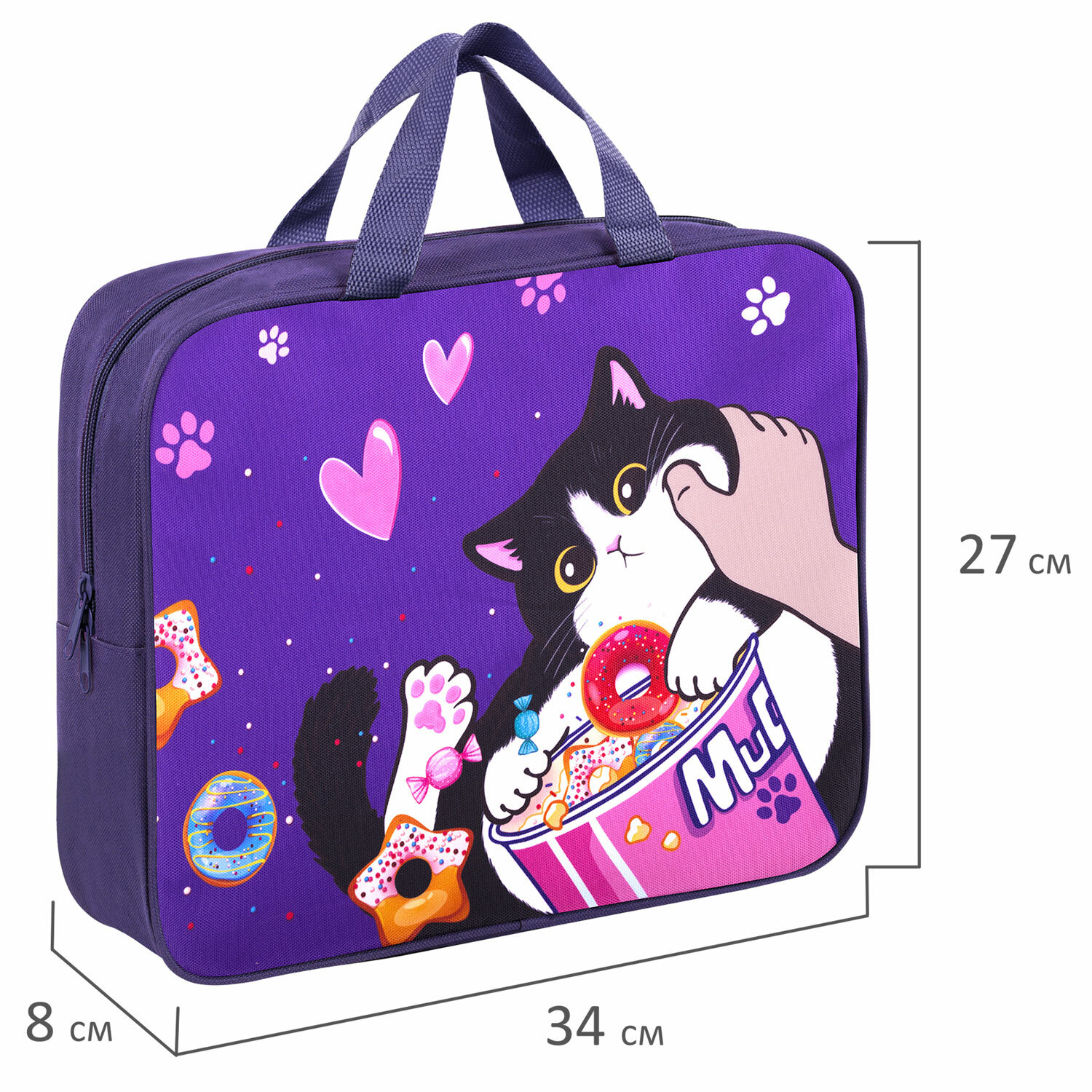 - Папка на молнии с ручками BRAUBERG KIDS А4, 1 отделение, полиэстер, 80 мм, "Sweet cheeks", 272120