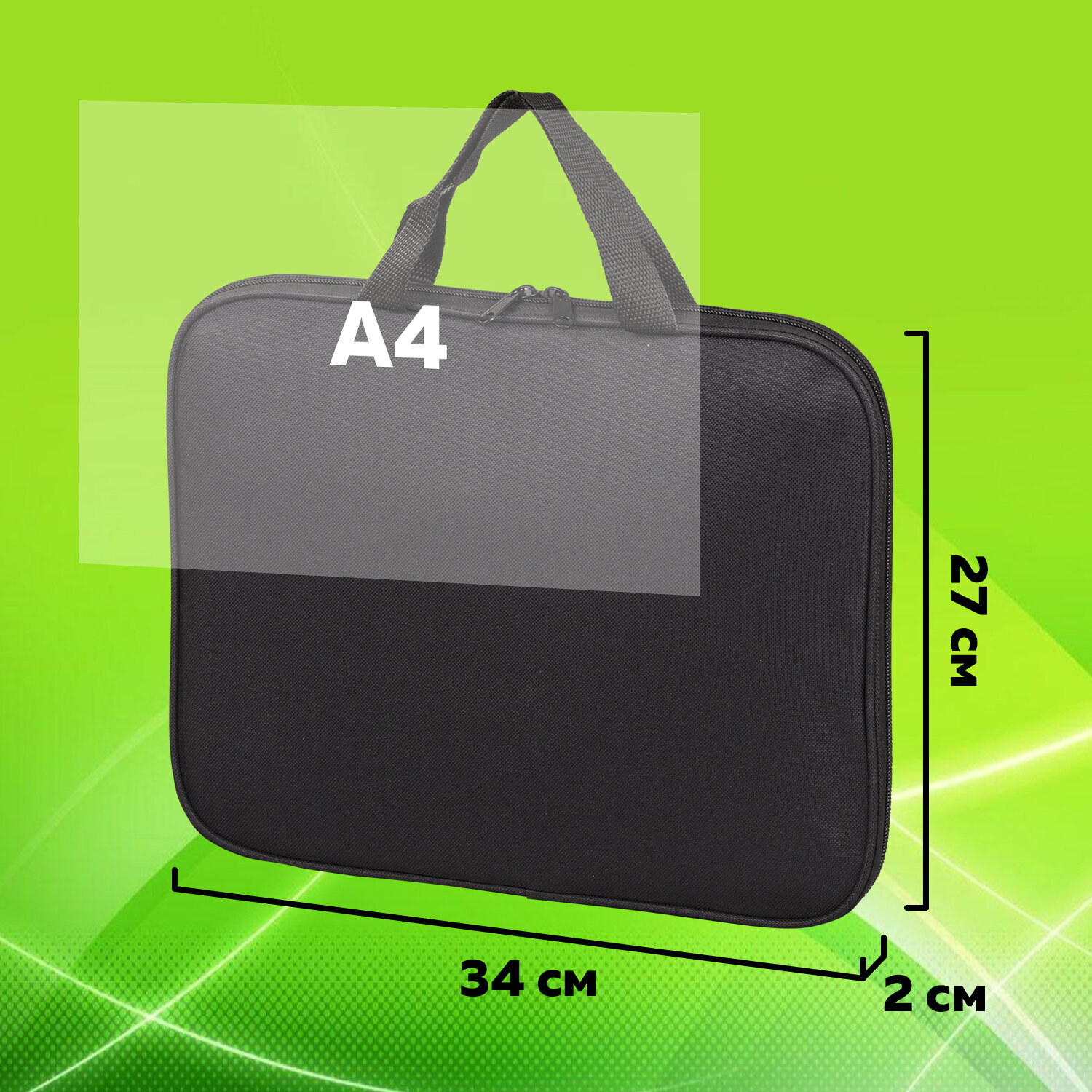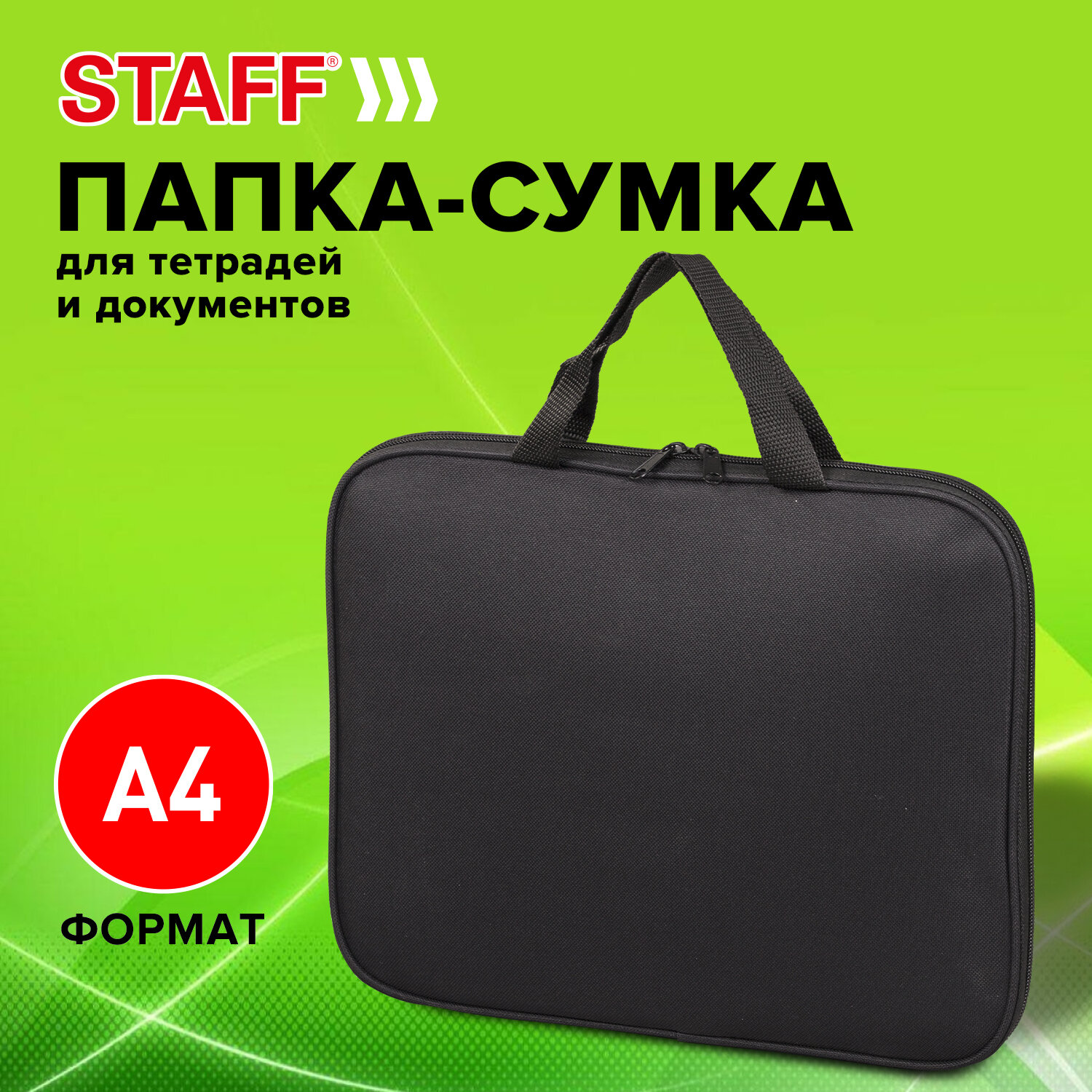 - Папка на молнии с ручками STAFF EVERYDAY, А4, полиэстер, черная, 270733