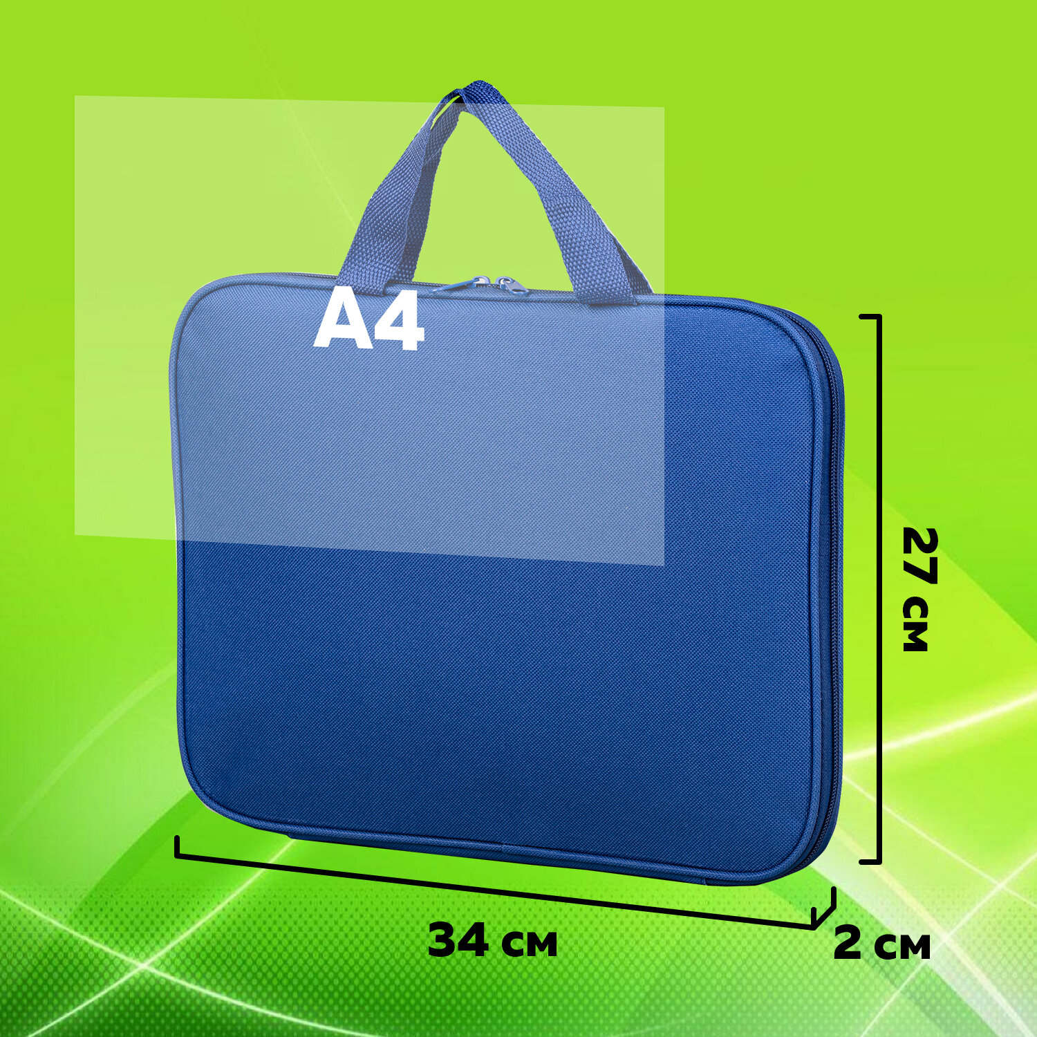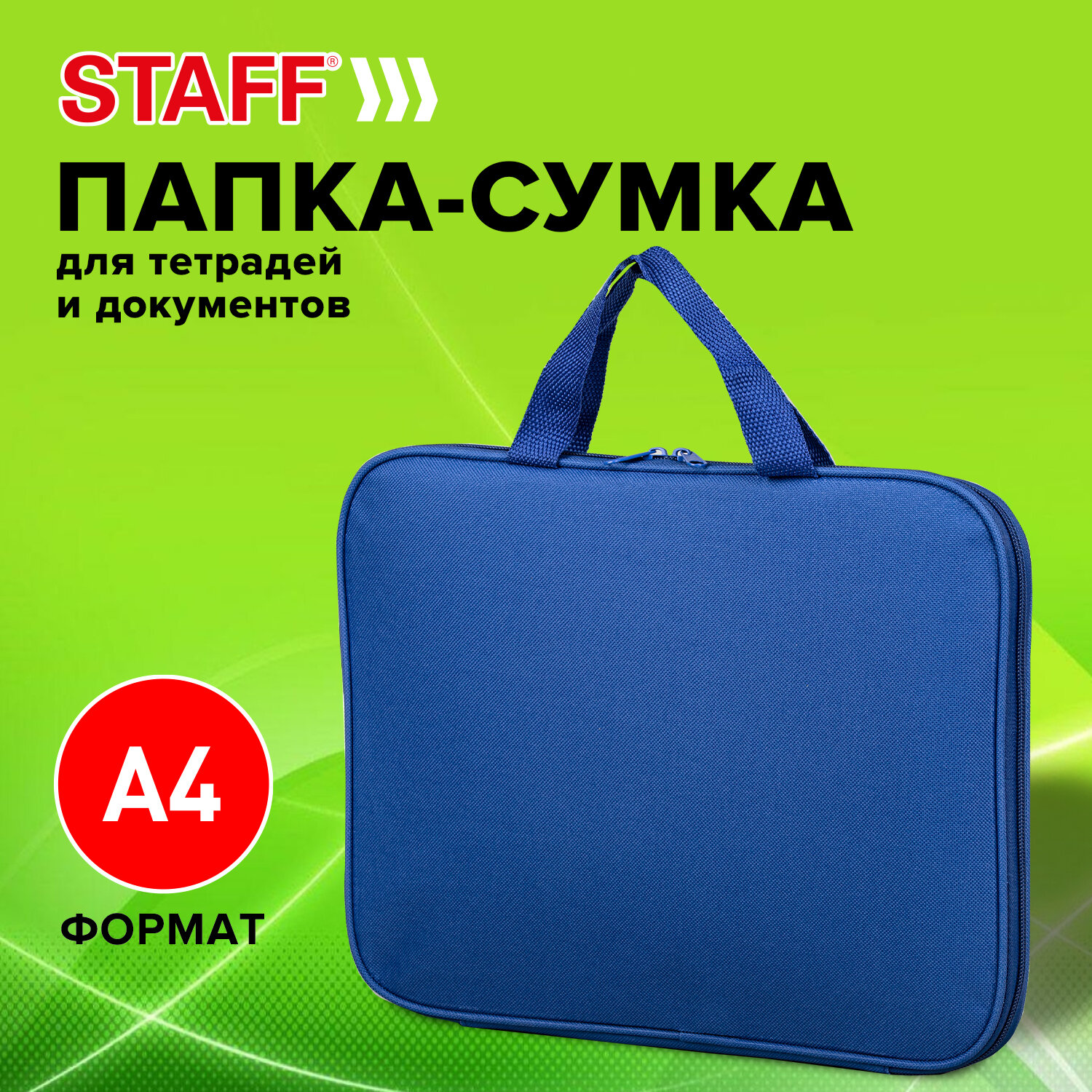 - Папка на молнии с ручками STAFF EVERYDAY, А4, полиэстер, синяя, 270731